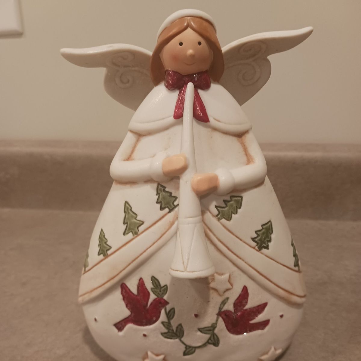 From Kohls. This Christmas angel has a horn to announce good tidings.