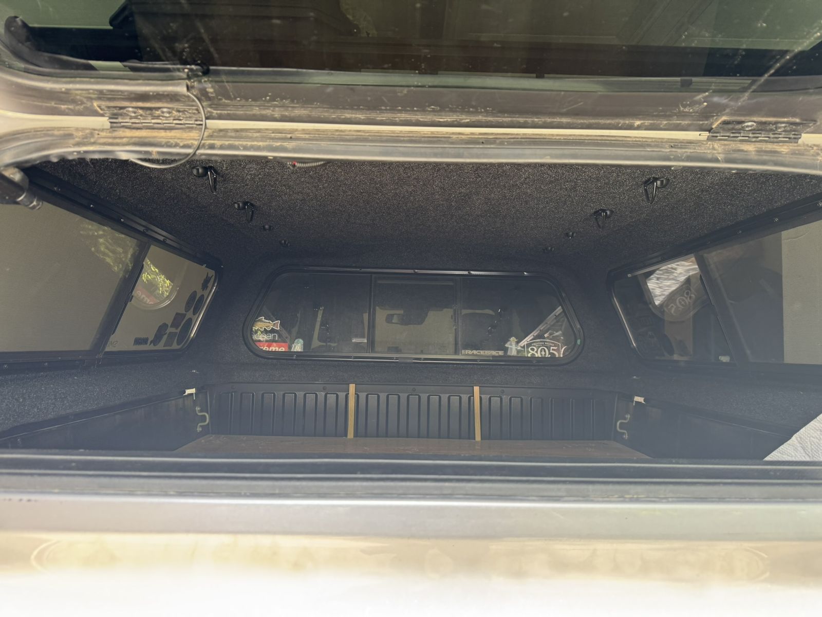 Overall good shape. It was on my truck about 3 years full time. There is some minor scuffing pictured on the top front driver side corner from something I had mounted to the roof rack. Interior conditions are mint.