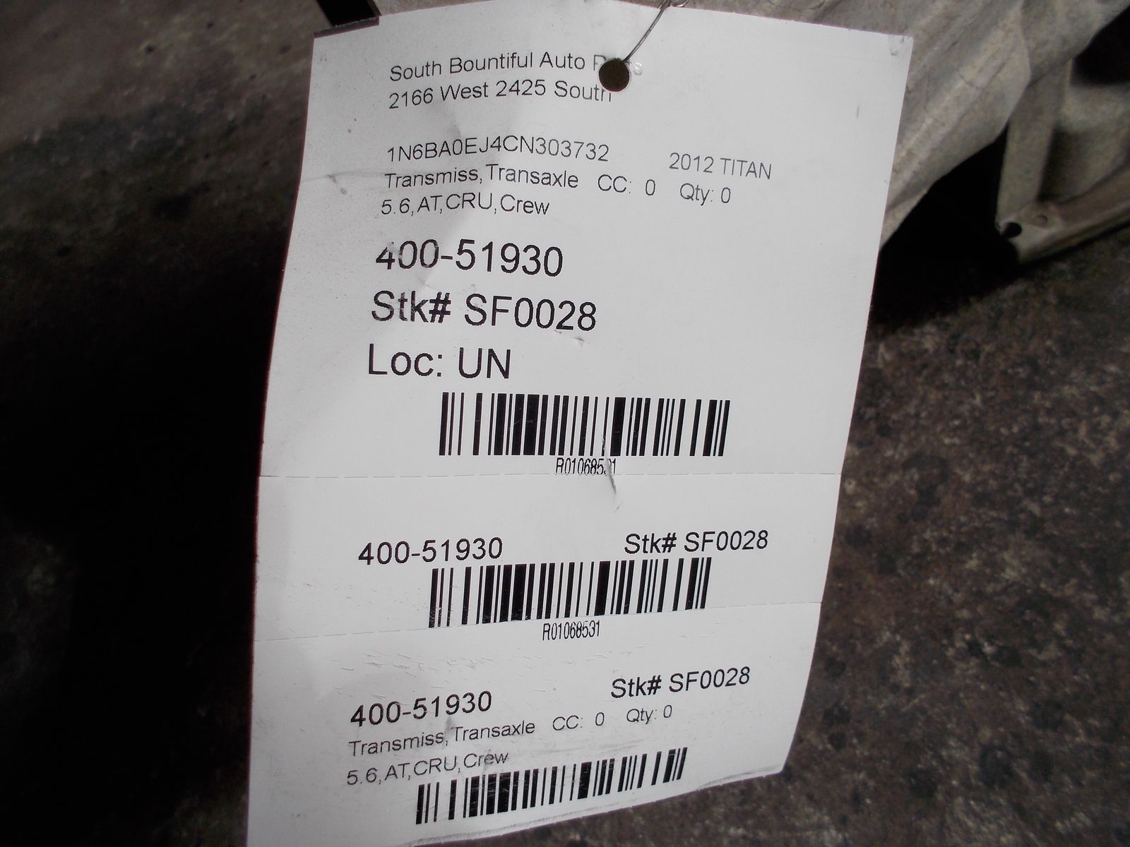 72-K ON THIS TRANSMISSION, FLOOR SHIFT TYPE, BIG TOW PACKAGE... WILL FIT 2011 AND 2012 TITAN WITH BIG TOW PACKAGE ONLY, CLEAN WITH NO LEAKS, this is NOT a pick and pull unit