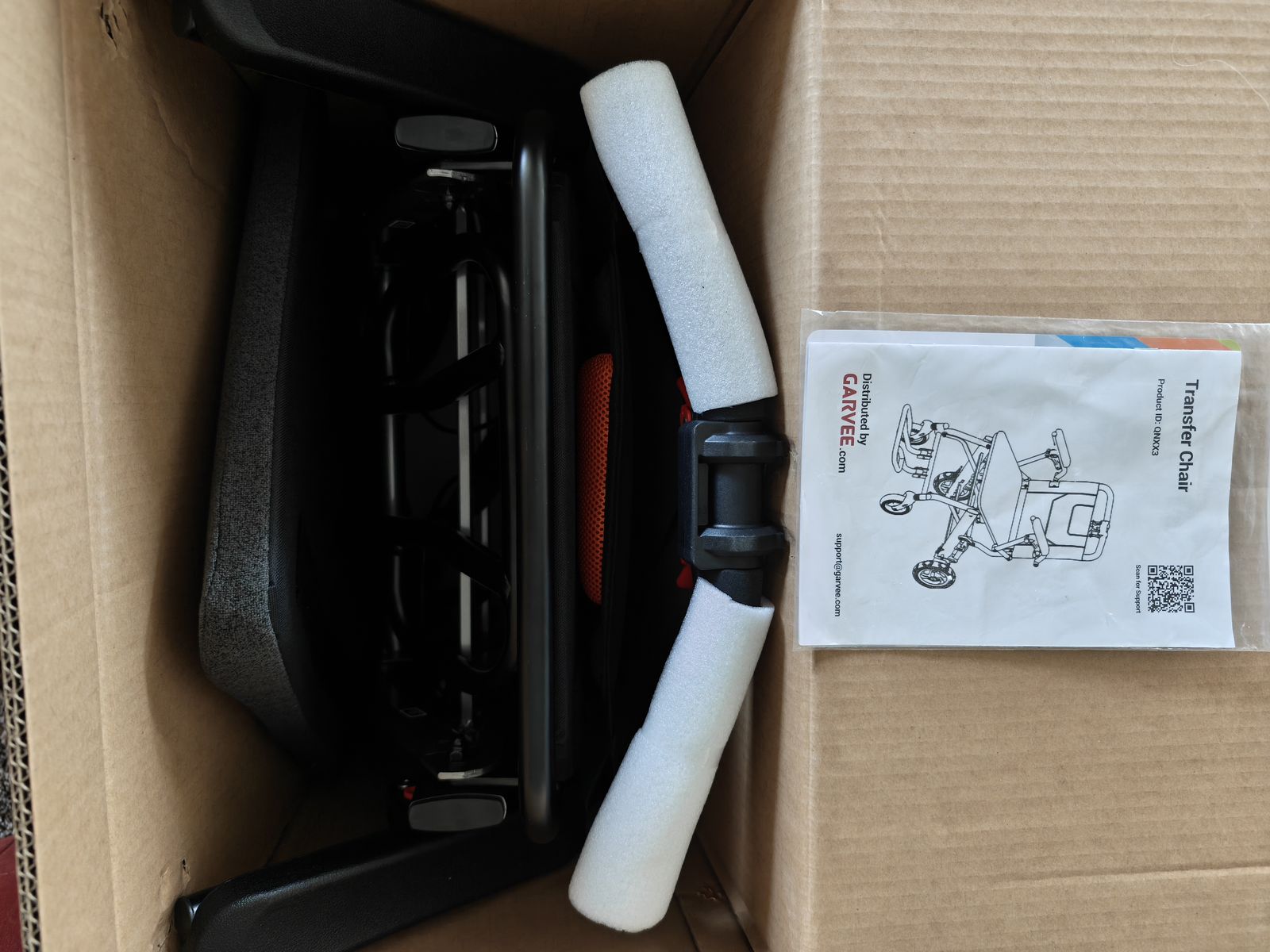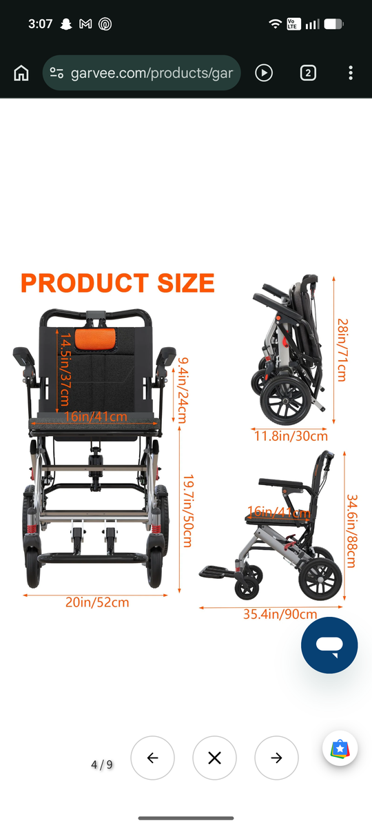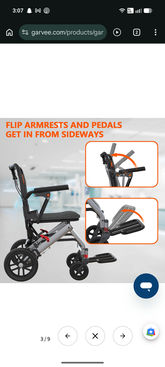 New in box. Garvee Ultra Lightweight Elderly Transport Wheelchair Weighs only 24 lbs. Portable Lightweight Folding Transport Chair, with Locking Handbrake, Removable Flip Armrests, Swinging Footrests, Supports 220 lbs.. text preferred 3854367246