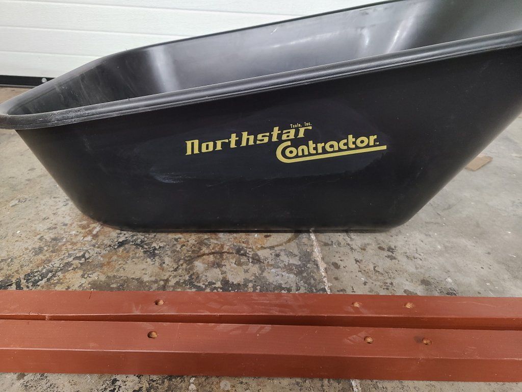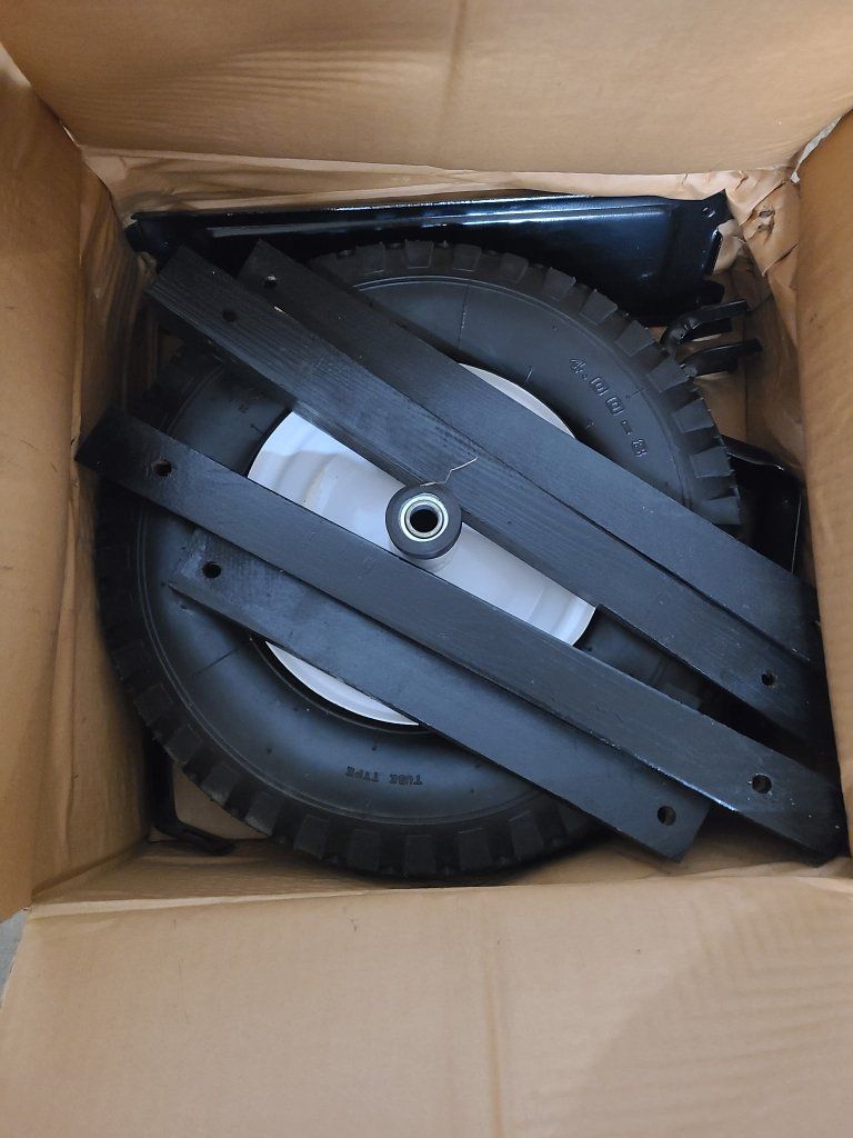 VenmoNew wheelbarrow - includes 6 cu ft poly tray, wood handles, and pneumatic knobby tire. New shovels - one flathead shovel and one round mouth shovel.