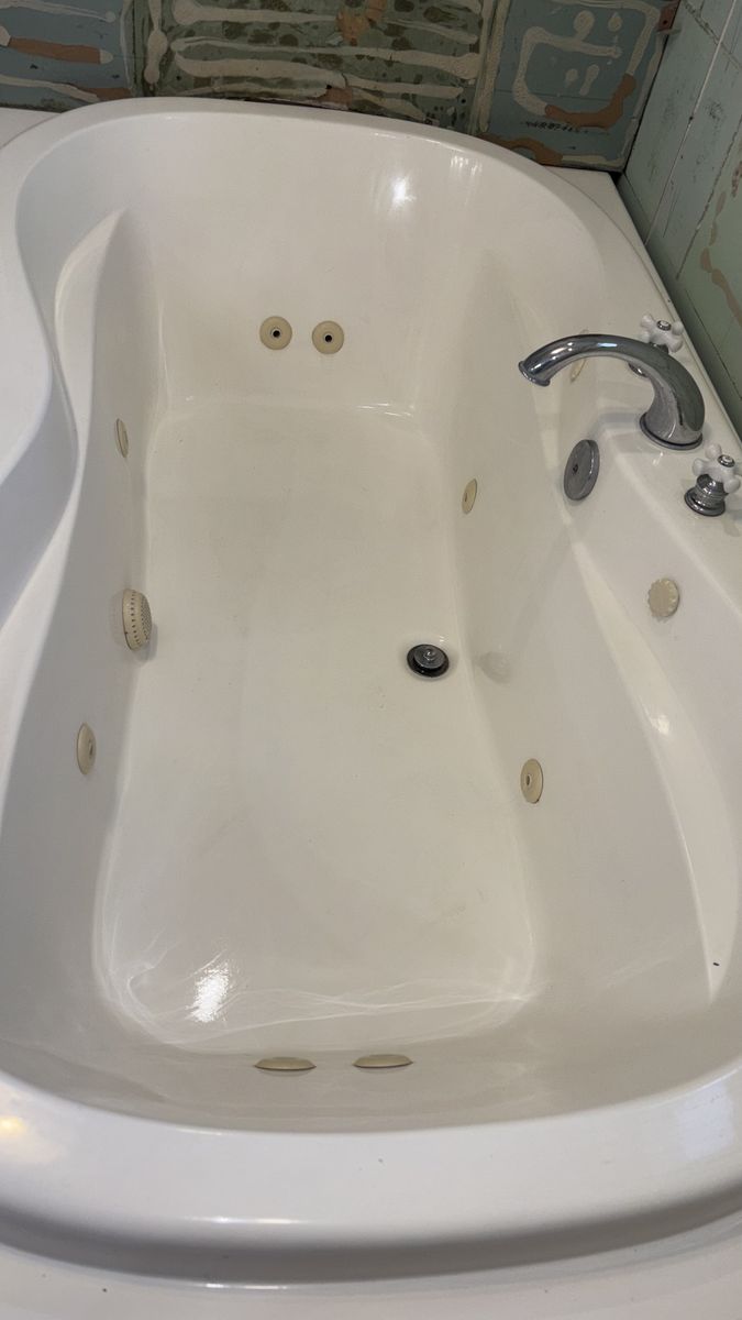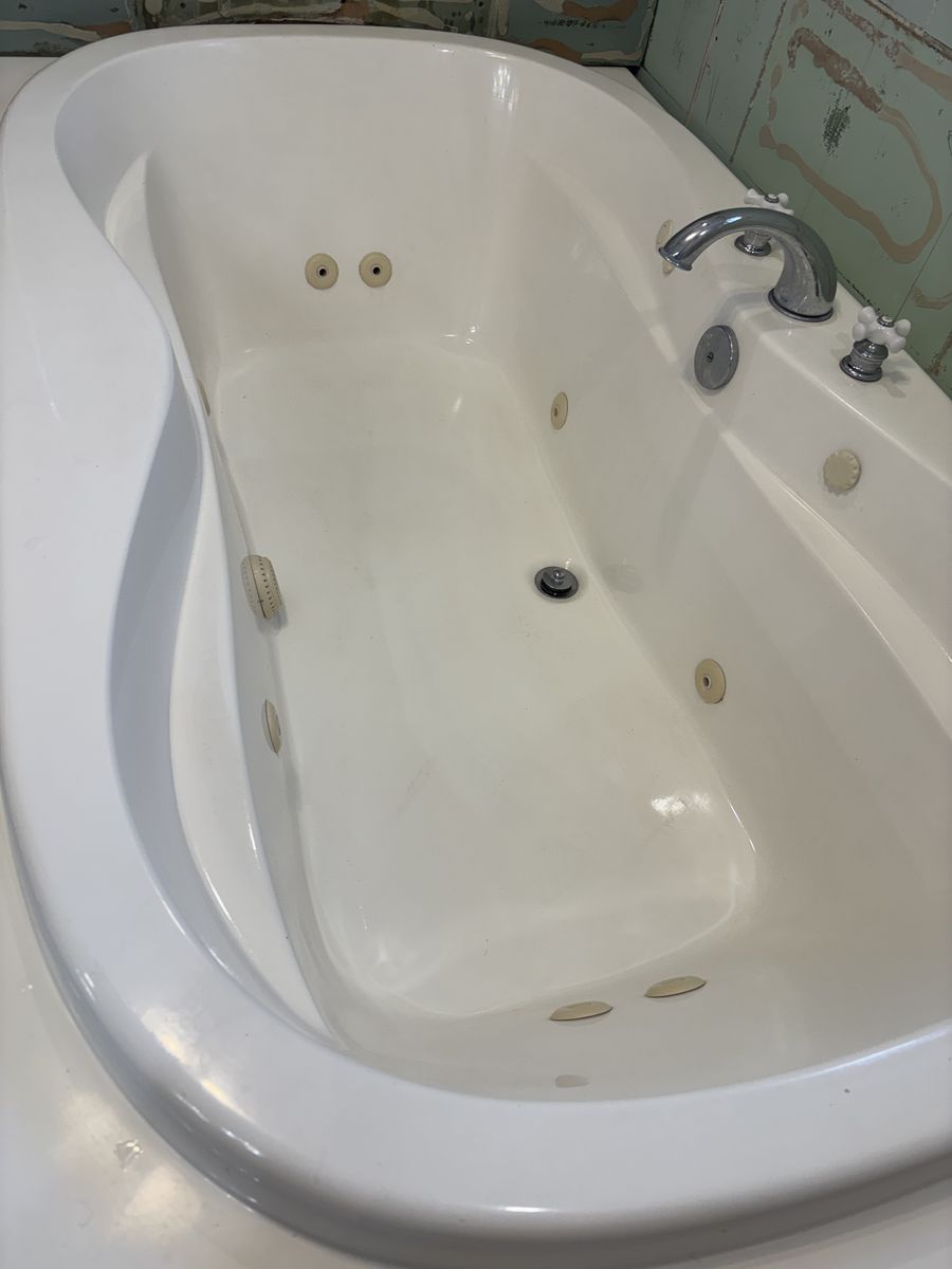 VenmoThis beauty measures 72”L x 42”W x 19”D. This measurement does not include the decking. The measurement is only of the actual tub size. The functional decking is ready for your custom tile, granite or solid surface to be installed. All jets work great. Tub price includes faucet hardware.