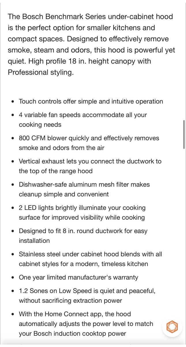VenmoBrand new 36” Bosch Benchmark series Range Hood. Never out of box. Wrong size for our project is why we’re selling. 36” wide 24” deep 18” tall. True vent to outside. Normally $1900, selling for $1000 Heck of a deal!!!
