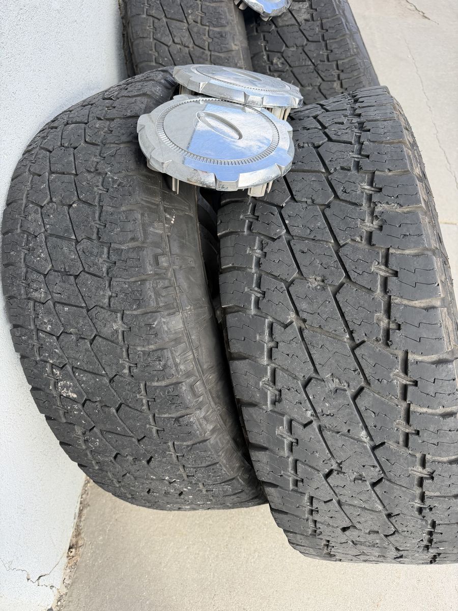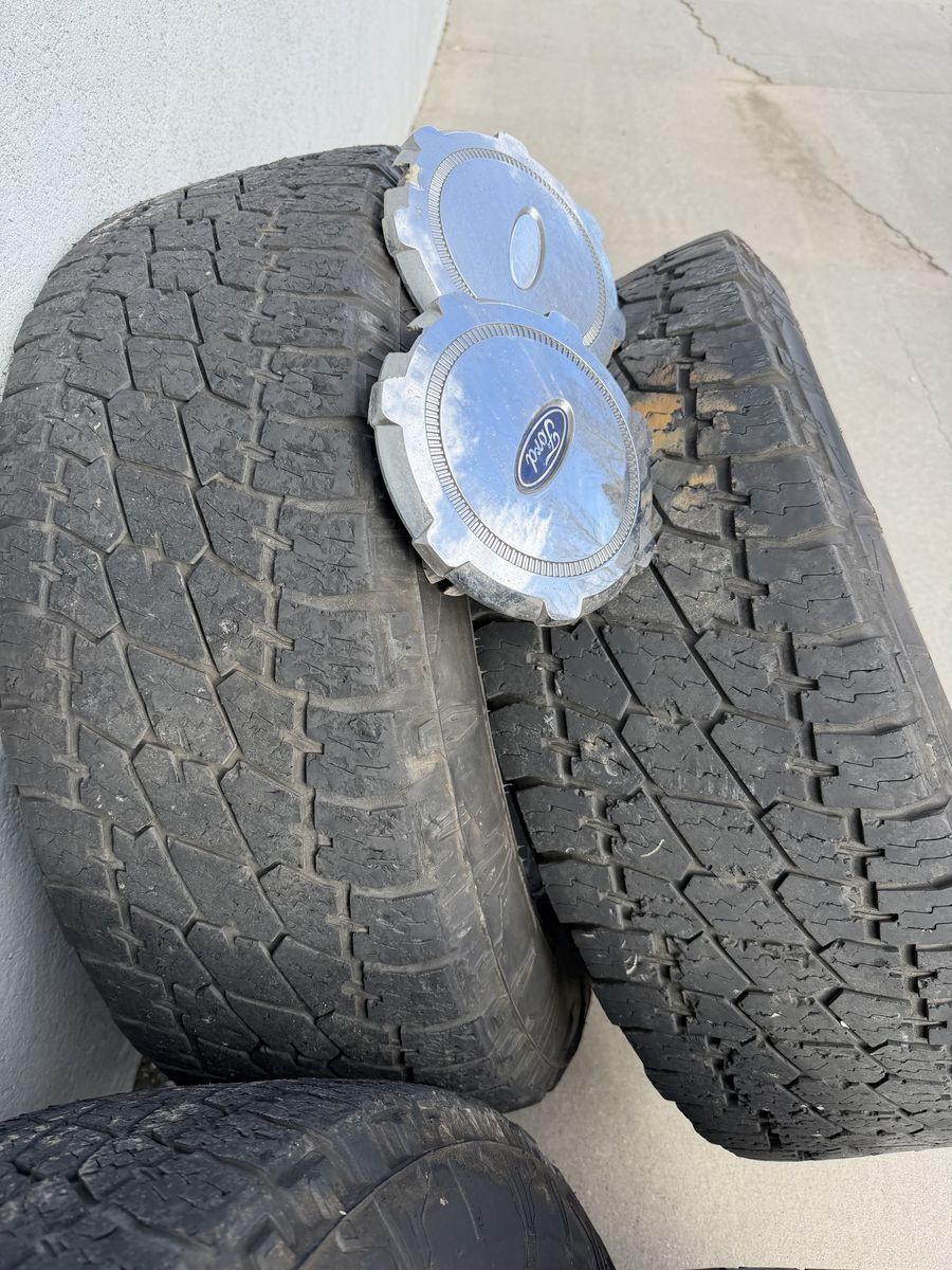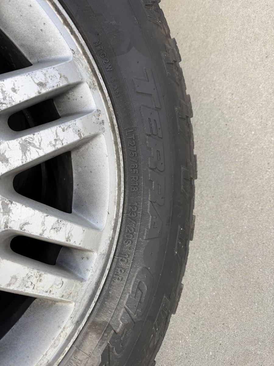 ApplePayI just got new wheels and tires for my 2014 F150. These are older ones. The tread is in ‘OK’ shape. They are NATO A/T Terra Grapper G2. Should fit any 2002 to present F150. 275/65 R18