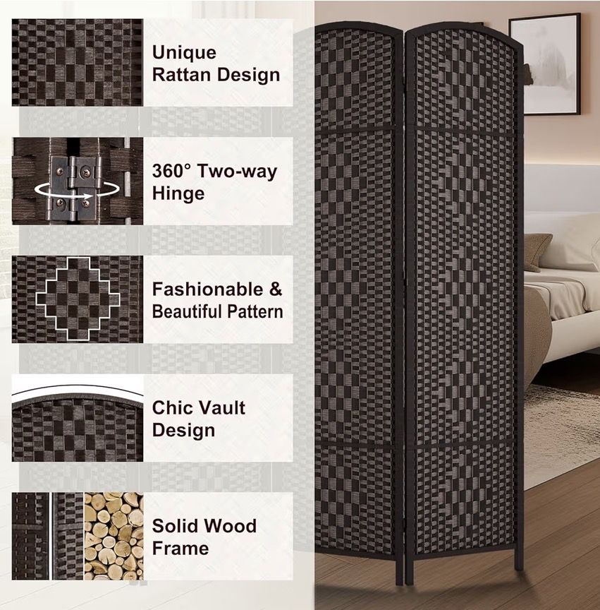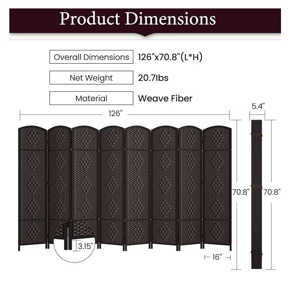 VenmoThis is a very practical piece that effectively divides any space while folding up, to a very compact size, when not in use. Deep rich coffee brown accenting the most trending designs. Measurements are in photos.