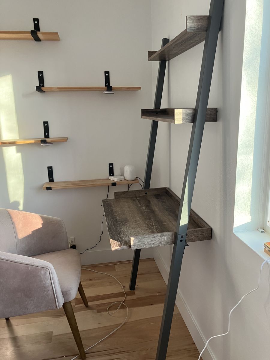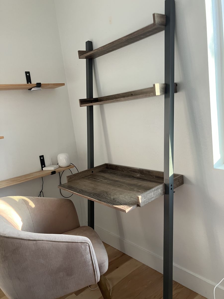 VenmoGrey wooden leaning desk; screws into the wall; great for tight spaces
