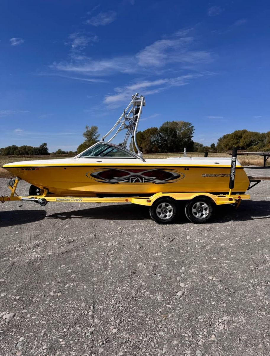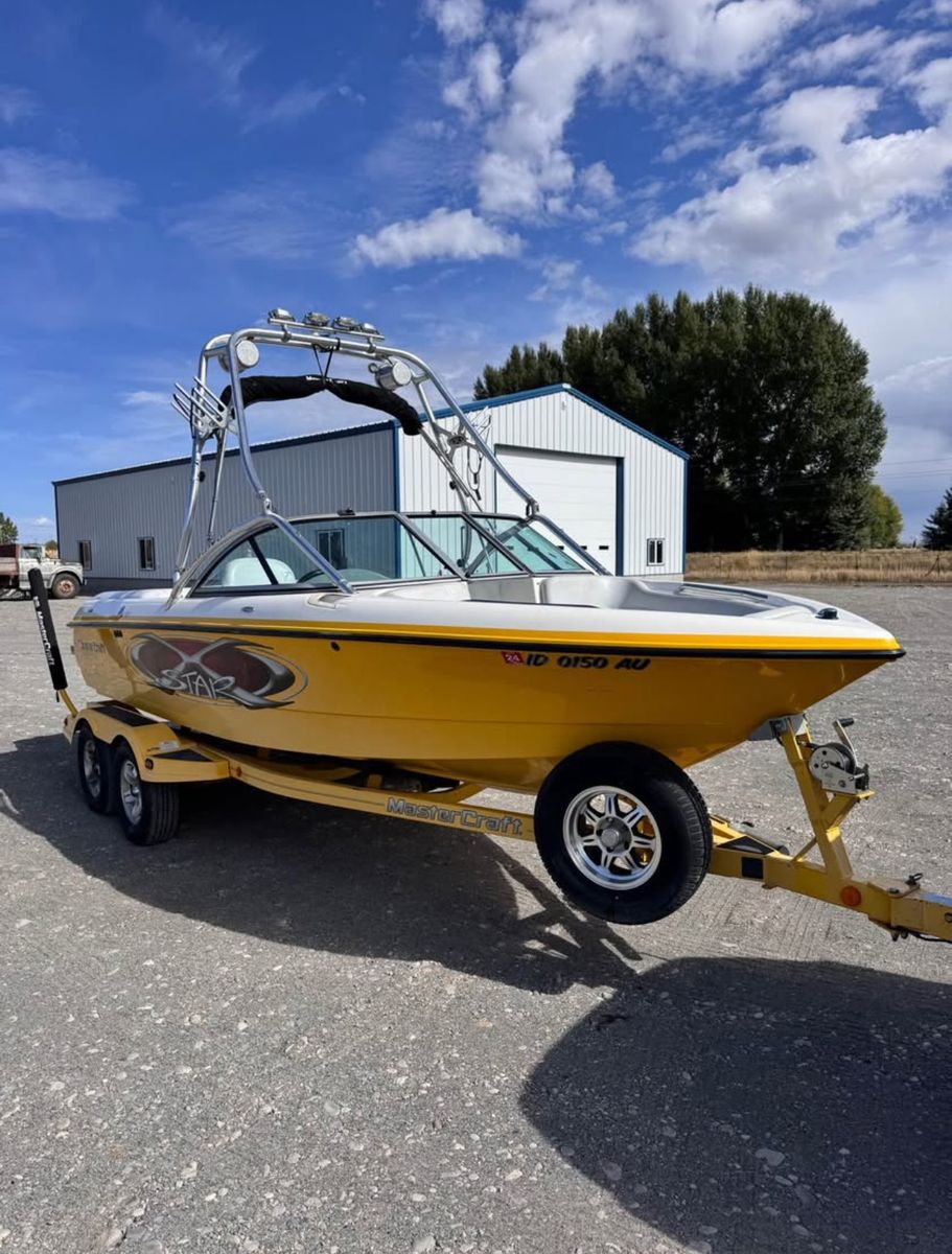 20 ft X-STAR stern drive boat 330 horsepower Mastercraft engine. The boat has 972 hrs, the new engine has around 400 hours on it. When we bought it the engine had around 300 hrs. Boat has two ballast bags in rear and one in middle of the boat for surfing. Includes the wake shaper. We’ve surfed, wake boarded, skied and tubed behind it. It has the perfect pass system with cruise control. wake tower with speakers and Bluetooth radio system. Trailer in good condition. Custom made rear platform. Loved the boat, but our family has outgrown it.