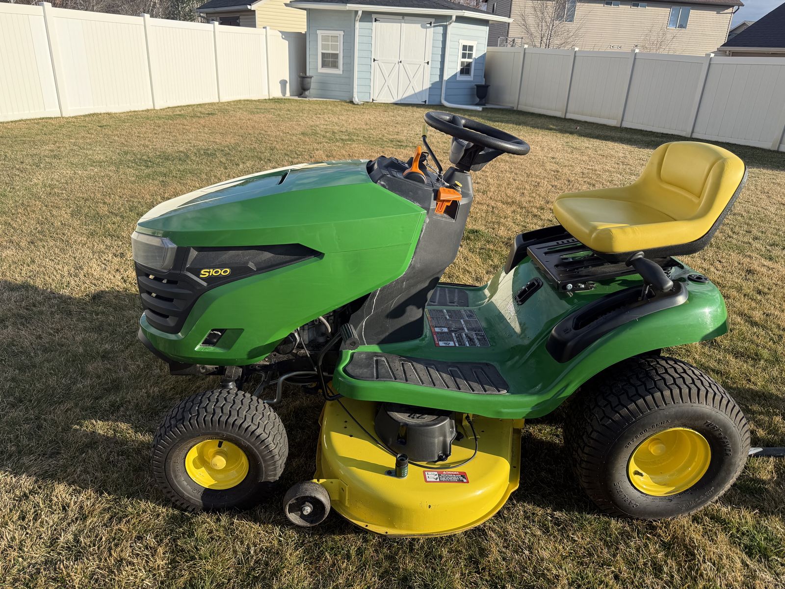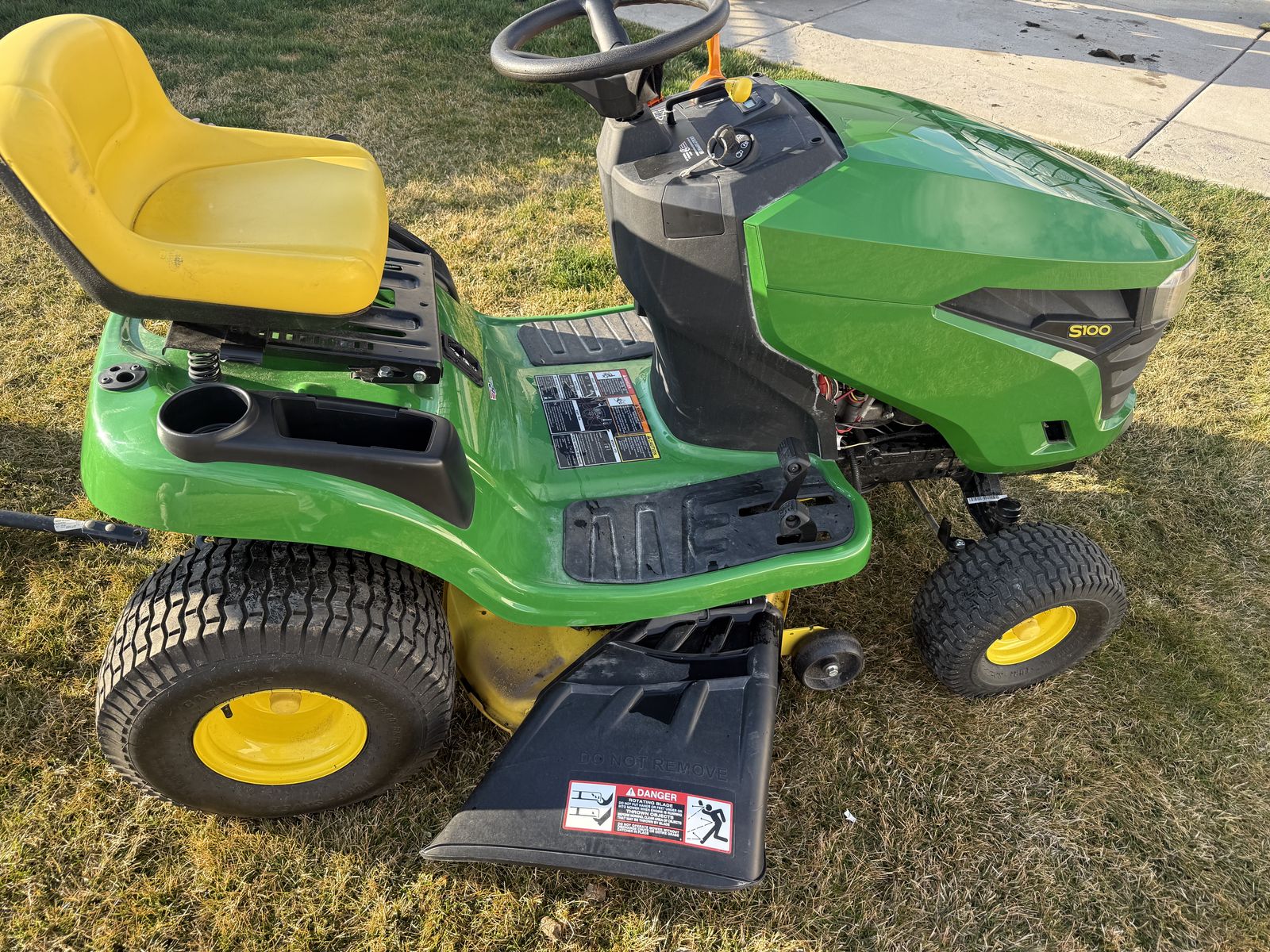 Runs cuts and drives amazing. Just got serviced and it’s ready to go. The s100 only has 47 hrs. This machine has a 17.5 hp engine and a 42 inch cutting deck.