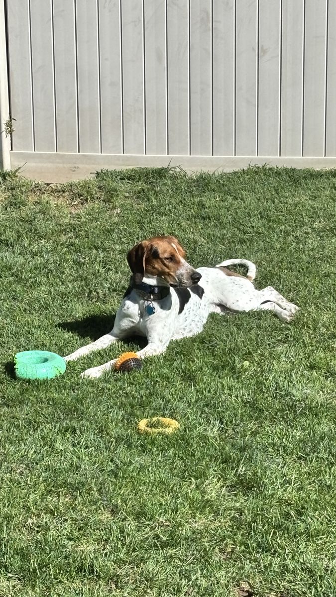 My dog, Daisy, is about a year and a half old and we are needing to re-home her. She’s a blue tick walker mix and a fantastic pup. She has plenty of energy but loves to cuddle when she’s calm. She knows basic commands but she should really be in a hunting household. She needs plenty of room to run and play. Great with other dogs and cats, loves kids as well.