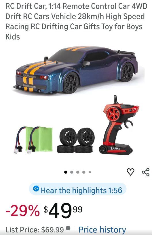 VenmoBrand new, still in box. Brilliant Blue. 2.4GHz. For ages 6+. (my husband loves his). extra battery and tires. under body lights up and headlights. In Herriman. Pickup only. Venmo or Cash. https://www.amazon.com/vdp/0e95518f5843497db052e0fd60bef74f?ref=anp_android_dp-media-block_share