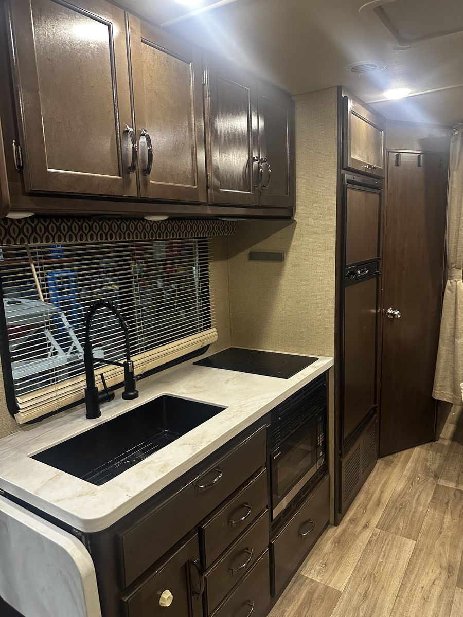 Here is a great deal on a newly updated motorhome! New countertops, table, electric stovetop, new faucets and sinks in both kitchen and bath! We are only the second owners and wanted to have everything new and shiny! Our investment ($5,000) just makes this deal all the nicer for you! Easy to maneuver around town (unlike our new one, LOL) with the slide-out extending the entire length and doubles the interior space! We loved the "Motorhome Life" and decided to upgrade into even bigger unit, so we need to sell this one! Lots of storage, sleeps 5-6! Great mileage for a motorhome and has plenty of power to tow our Jeep! This unit has always been stored indoors and includes an automatic hydraulic leveling system that has also been installed last year. Must see to appreciate!