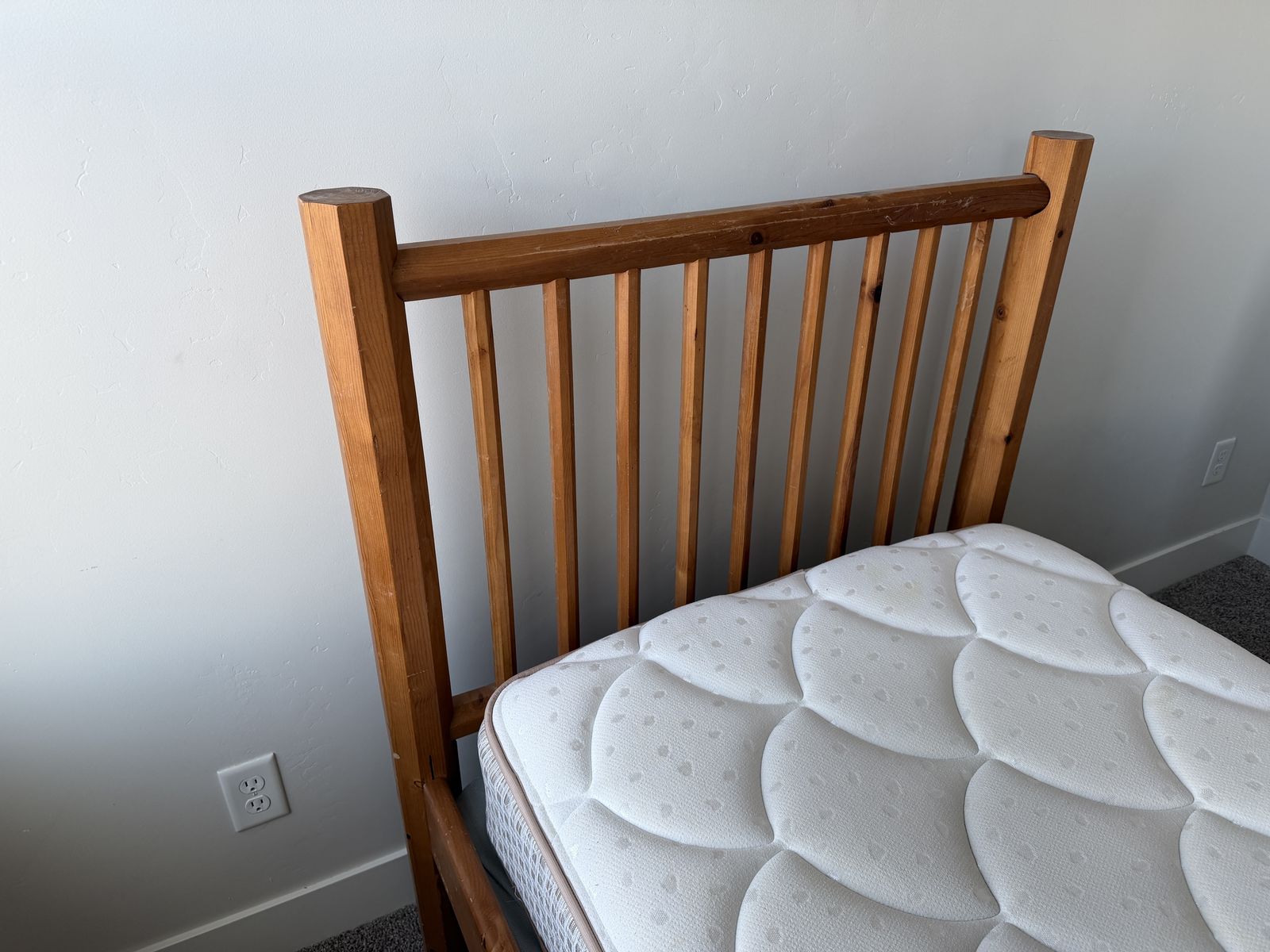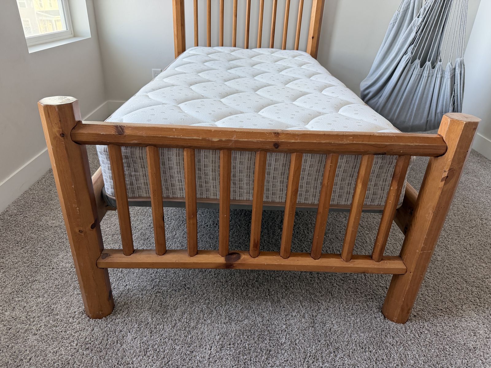 VenmoThis bed frame is very easy to setup. No tools needed. No box spring is needed. Also comes with a gently used twin mattress.