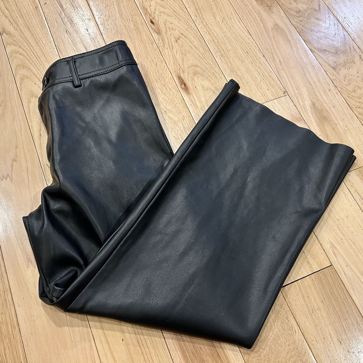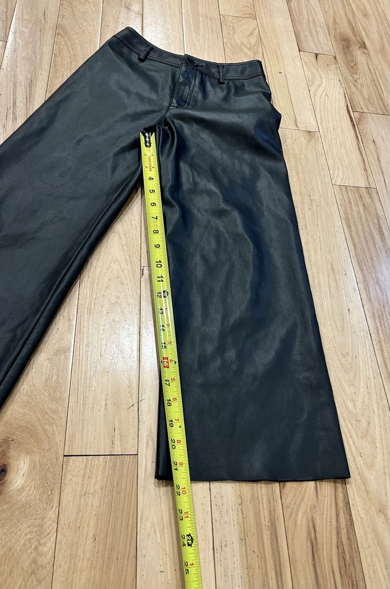 Zara NWOT Black Faux Leather Wide Leg Pants - Girl’s Size 10 - with pockets, raw cut hems and button and zipper fly closure - brand new without tags.