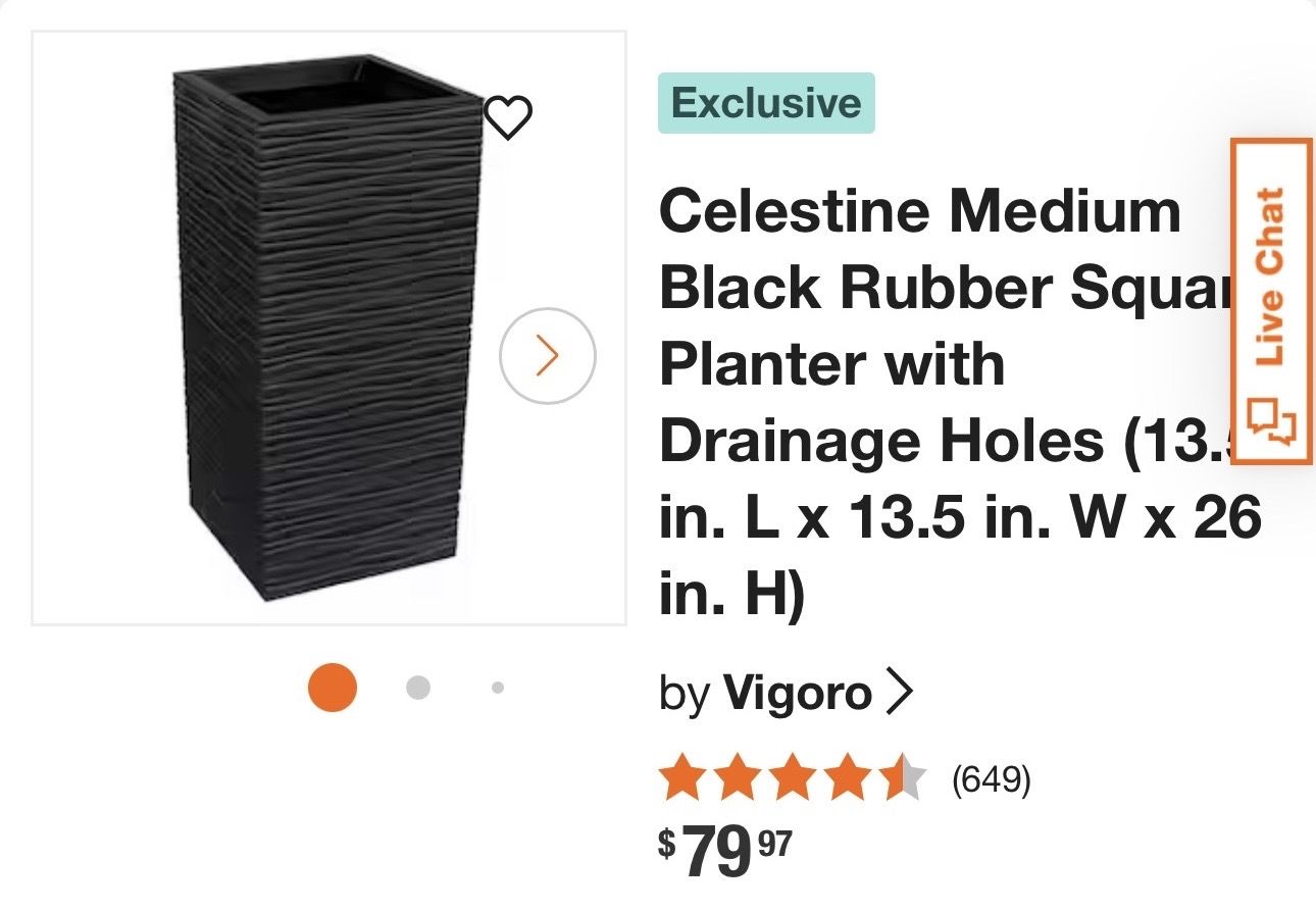 VenmoNearly BRAND NEW!! Celestine Medium, Black Rubber Square Planter with Drainage Holes (13.1-in. L x 13.5 in. W x 26 in. H)