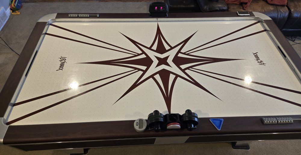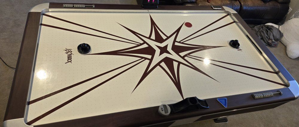 VenmoHeavy duty air hockey table, automatic scoring etc everything works great. We have had lots of fun with it but are now replacing it with a ping pong table. Dark wood and stainless steel accents will fit any game room decor. You won't find a better quality air hockey table. Cash or venmo.