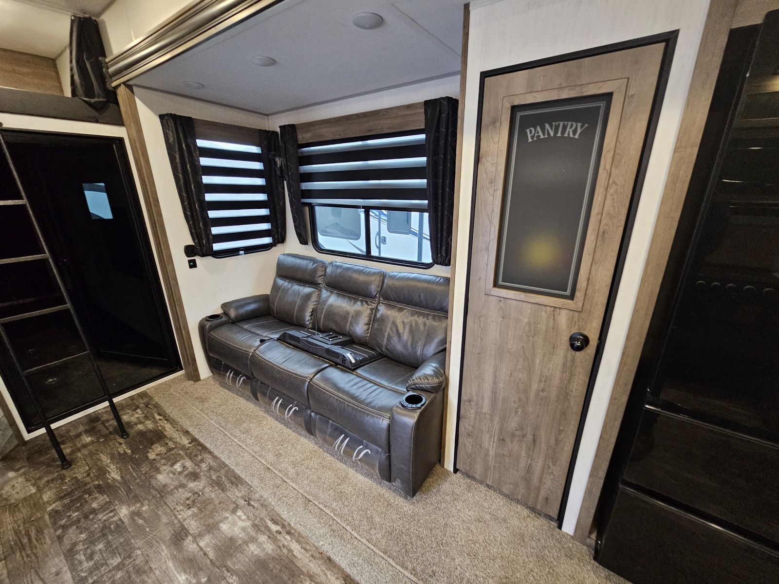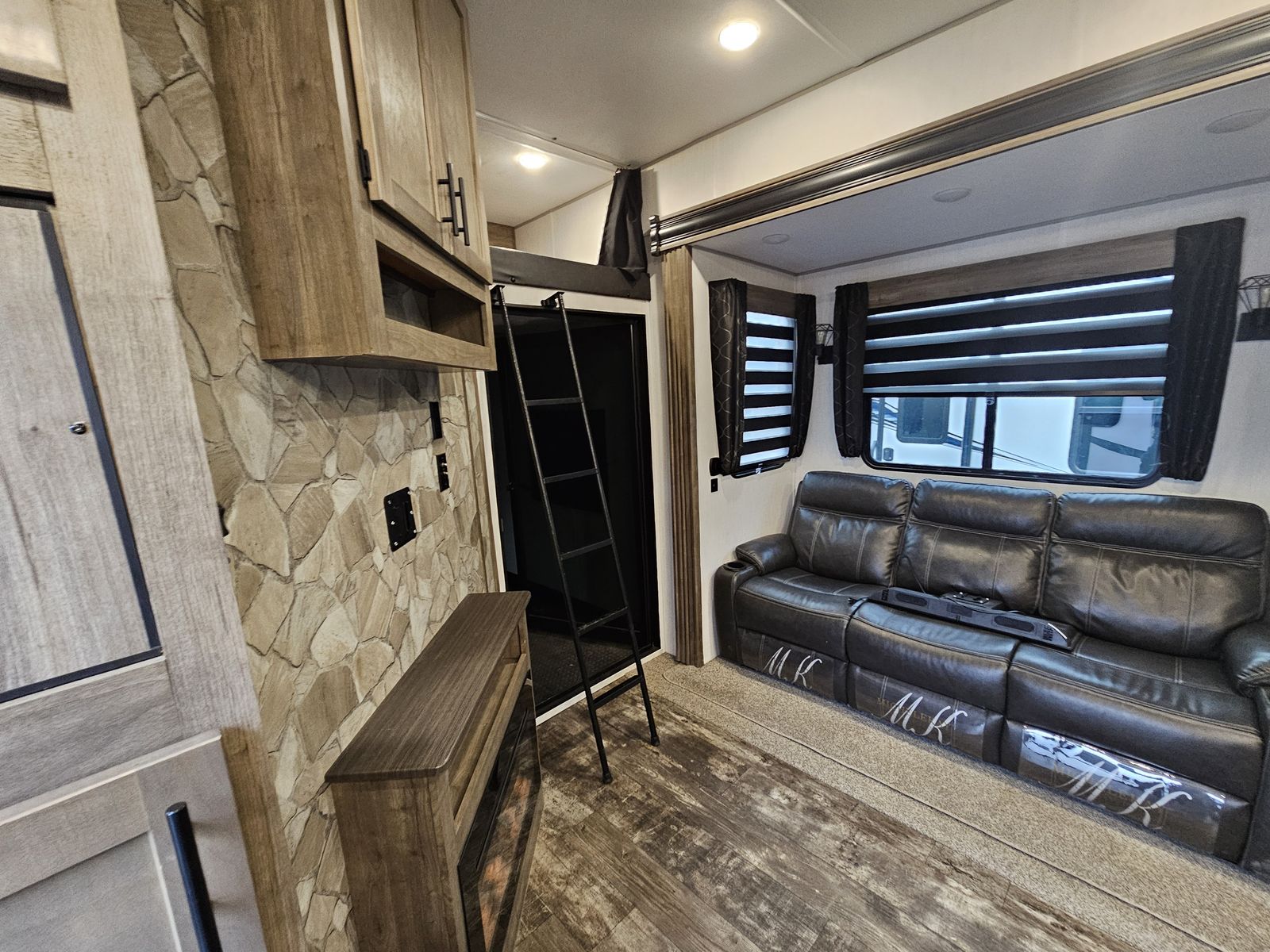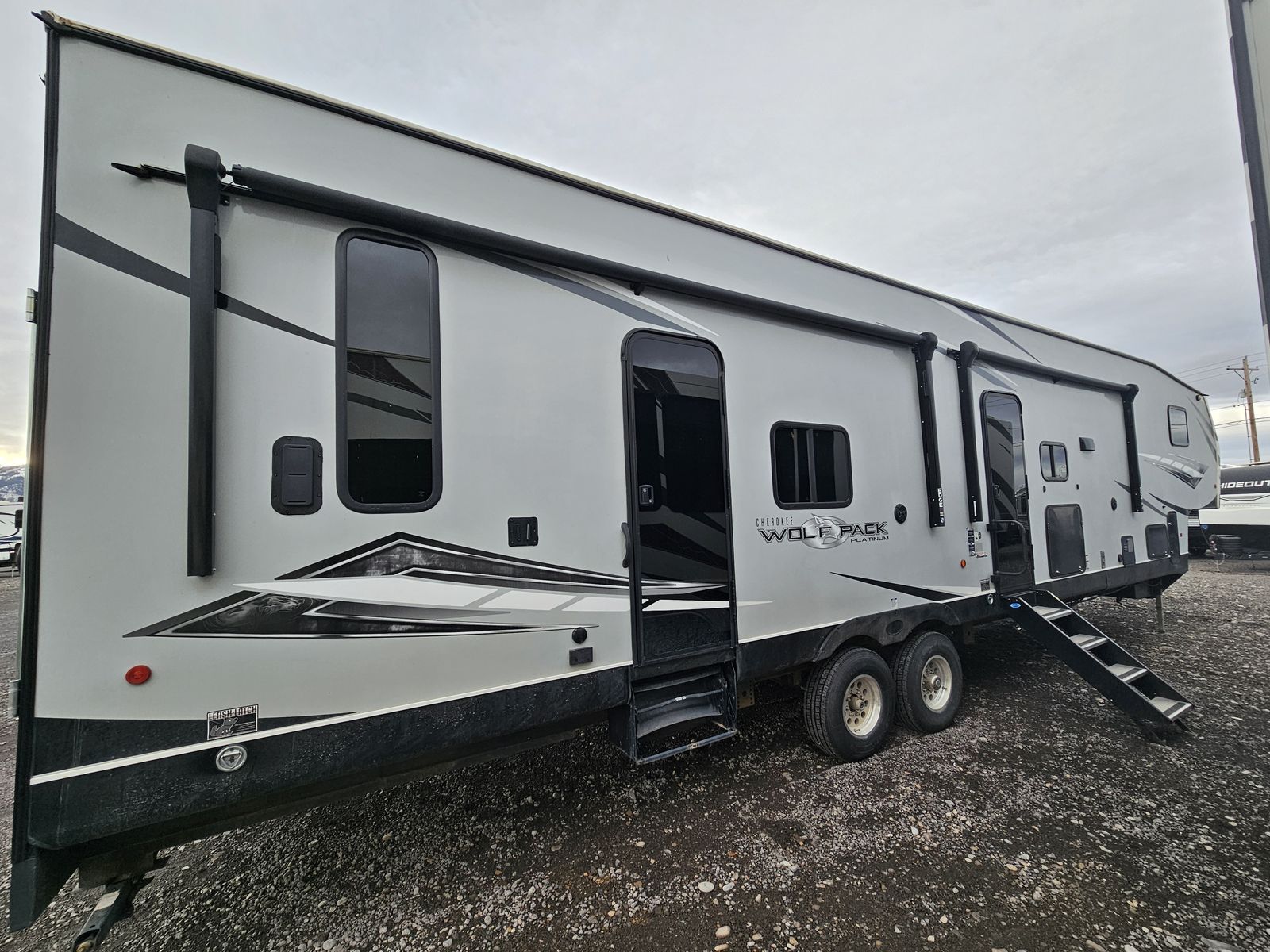 Available now at Mountainland RV, this 2022 Forest River WolfPack 345PACK14.5 is a clean and spacious fifth-wheel toy hauler that’s perfect for hauling a side-by-side or ATVs while still offering comfortable living space for camping and travel.