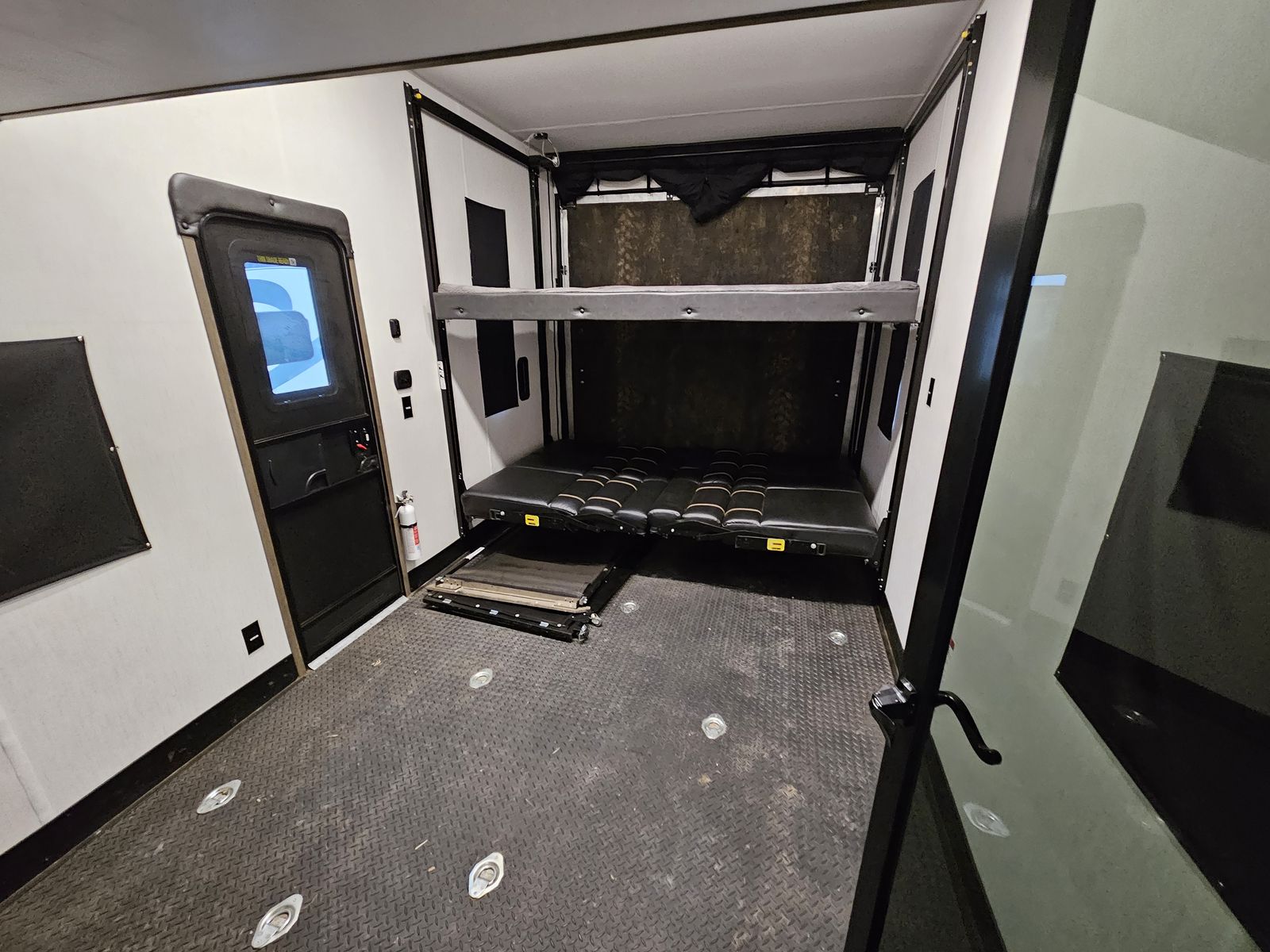 It features a large 14.5-foot garage, a king bed in the master bedroom, HappiJack bunks in the garage, and a full kitchen with a generous refrigerator. The unit is equipped with A/C, a furnace, 50-amp service, washer/dryer hookups, and a fuel station for your toys. Inside and out, it offers plenty of storage and has been well cared for.