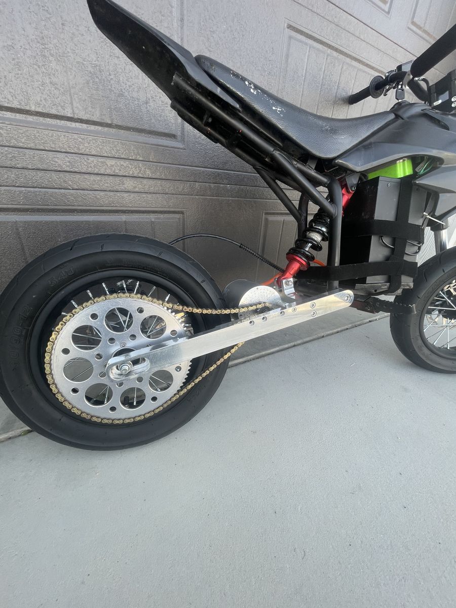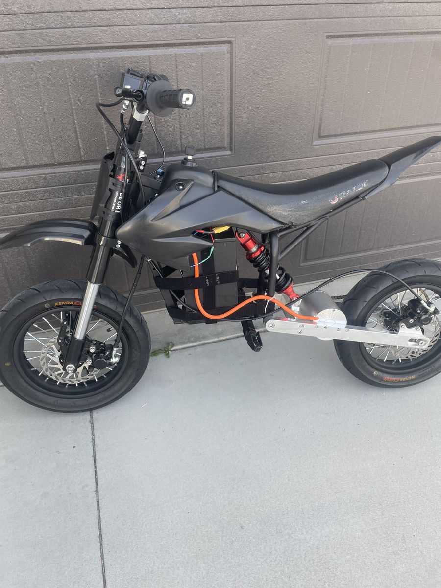 VenmoModded MX 650 with personalized parts from electro and Co. Midwest, mini mods and ride or die, two main problems with the bike, the biggest and first being the motor sprocket recently bought on hot paxx for about $25 and a broken seat meaning the back can fold up a little bit it is still held in place, 72 V 20 AH battery with a 3000 kilowatt motor last time I checked on a full charge went about 50MPH.battery Life is OK comes with a box full of stock/newer aftermarket parts and their hardware highlights of the box contains stock, swing arm, tires, electro, and Co. sprocket and some other smaller parts. Thank you for looking at this listing.