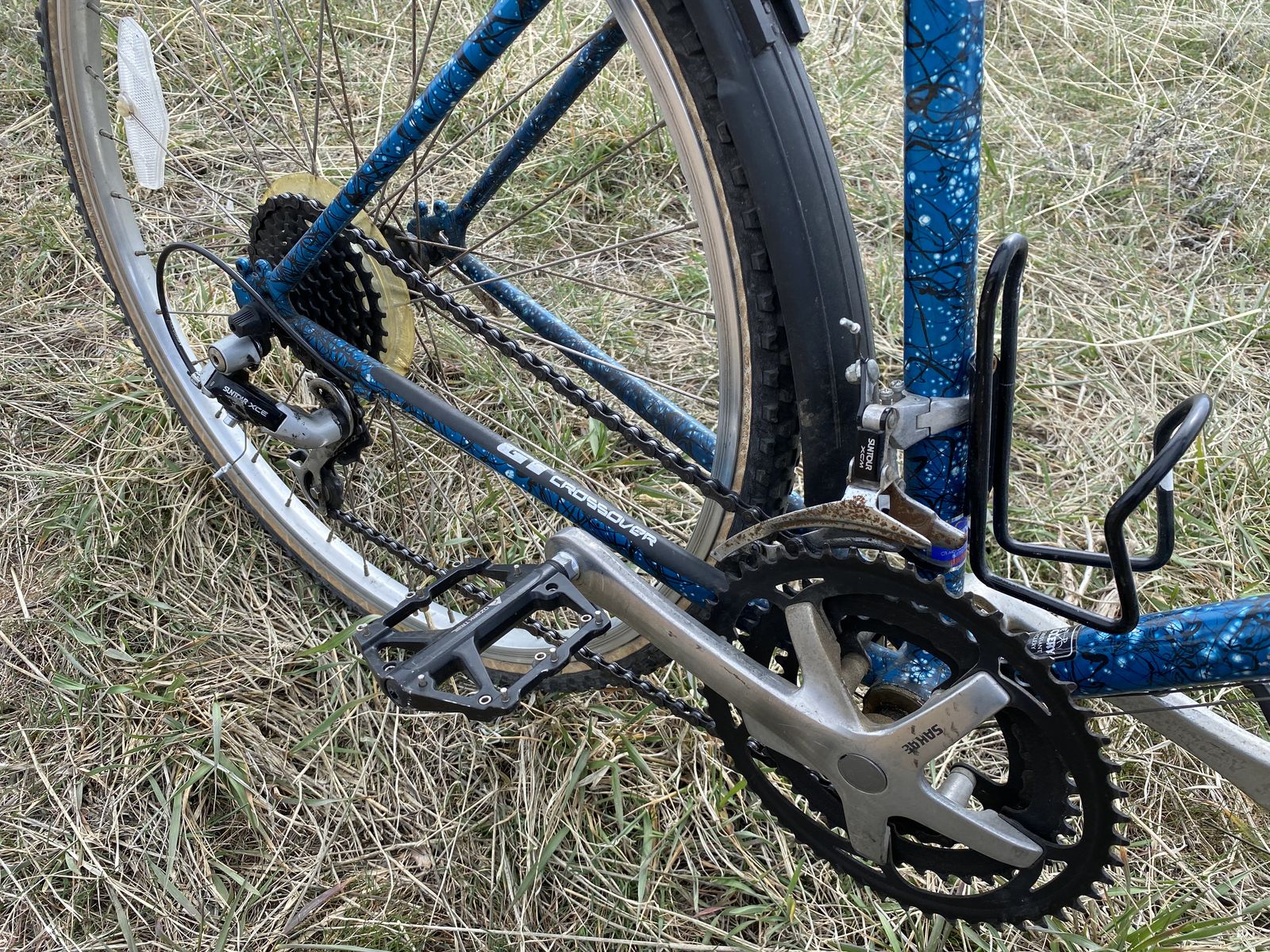 ZelleThis is a GT Continuum Men’s XXL Vintage bike. 24 inch seat tube. The color is super rare and in tip top shape. Infinity cro-mo double butted steel tubing. It’s light as a feather. She shifts great through all the gears. Front derailleur is a friction shifter, rear is index. I switched the brakes so the front is on the right side, as it should be. It stops extremely well. New chain last year. The wheels are a rare size called 700D. They are the same size as 27.5 or 650b wheels so you can throw newer gravel tires on her. There’s enough room for 45-50c tires. Rain guards work super well. it’s a very capable bike. $400. Located in Riverdale.