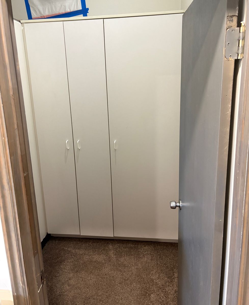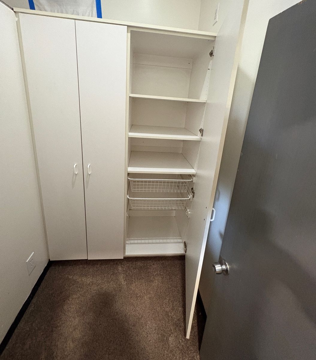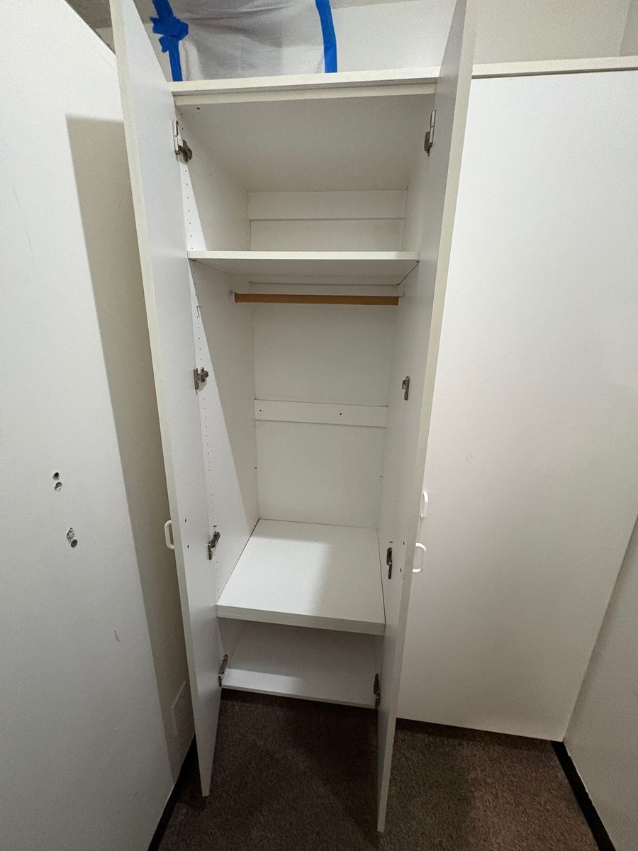 These wardrobe cabinets/organizers are in good shape, this was made by California closets or closets by design don't recall which , was great for extra clothes storage. the overall height is approx 85" the width is 55 1/2" the depth is 24" (But can be separated), it has many adjustable shelves for both sides and is adjustable from top to bottom. The right side also has 3 wire baskets that slide in an out on drawer guides also . We are remodeling and it wont work in new space.