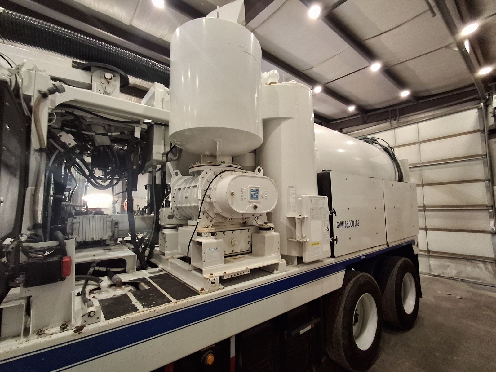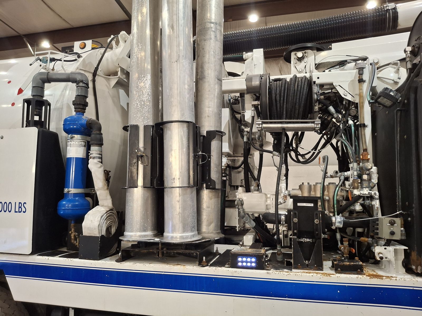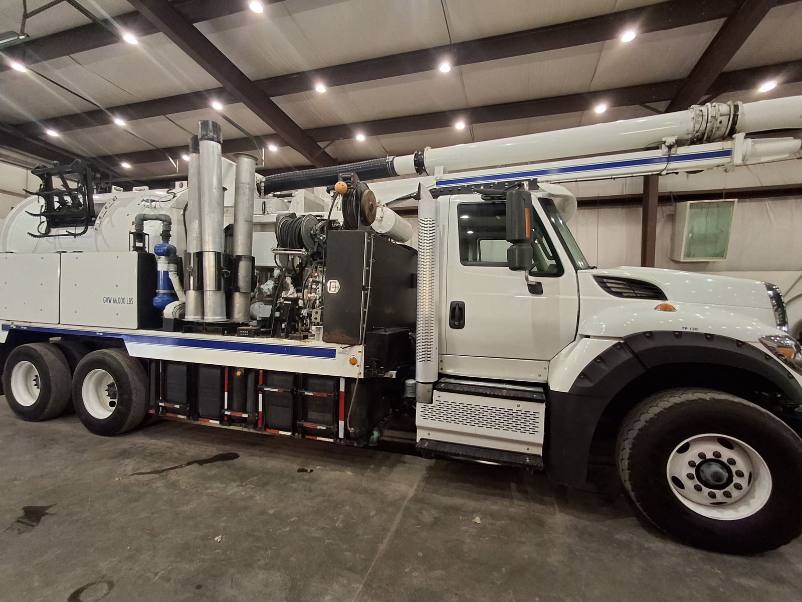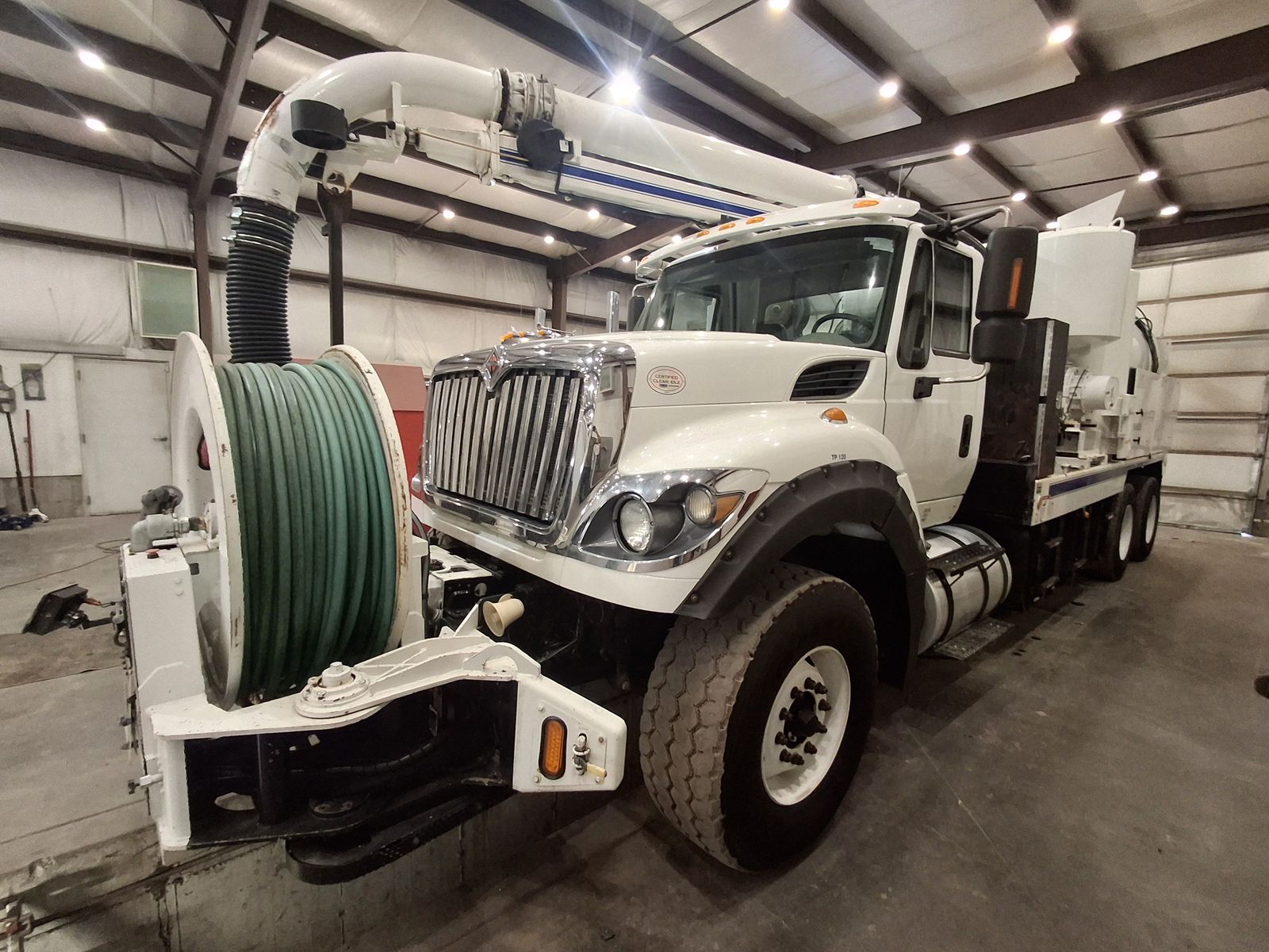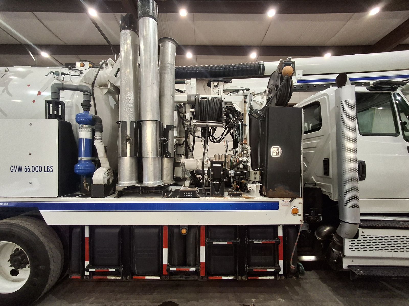Hydroexcavation/Sewer Combination Truck this truck is a positive displacement truck with a huge Roots 824 RCS-H LFT 18" Blower has lots of suction, has 200' Hydroexcavation hose on a automatic reel with a 50' washdown hose reel, 600' rodder hose at 3000 psi, has cold water Recirculation and air purge system, has cyclone for Hydroexcavation filtration, 1300 gallons of water storage and 11 cubic yard debris body in good condition, water pump is a Giant GP7545LCBHS-24 55.5 GPM at 3000 psi pump and pump has good pressure, everything works perfectly on this truck and is complete with digging tube's and digging ends and rodder tips and digging nozles, chassy has 8497 hours and 69,714 miles engine is a maxxforce N13 410 HP with a 3 stage engine brake, transmission is a Allison Automatic