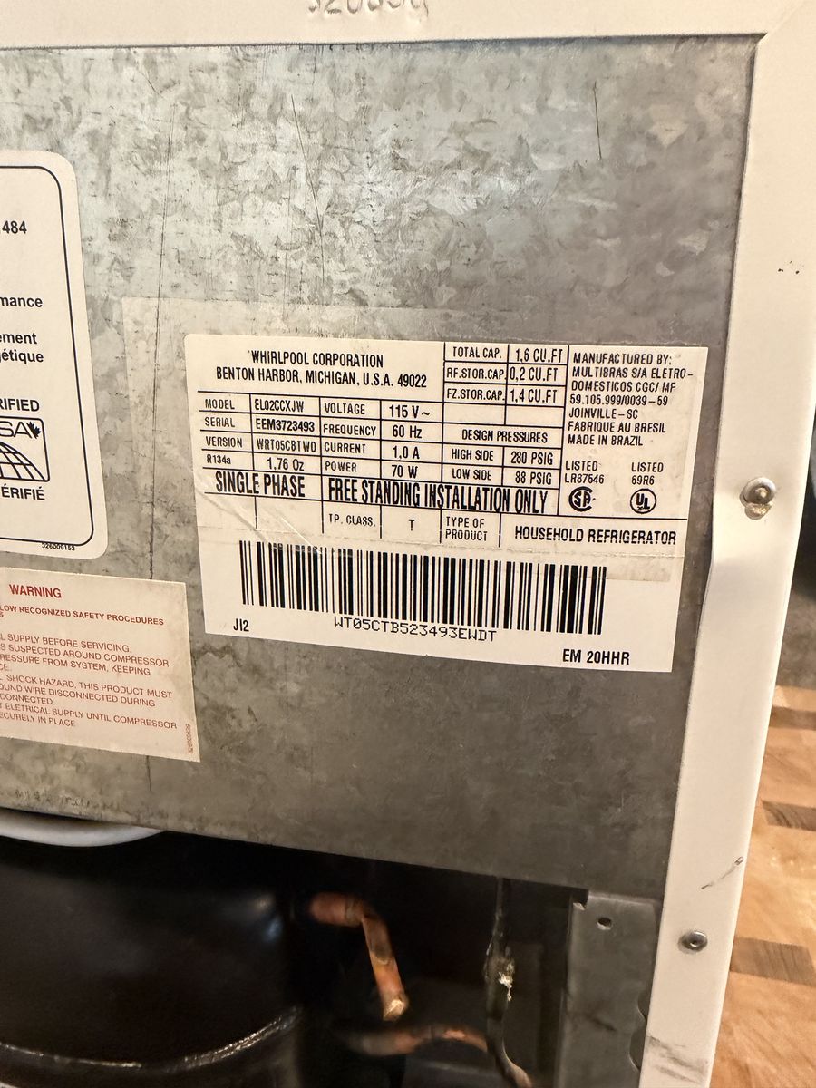 Features: • Whirlpool brand compact refrigerator • Space-saving size • Energy efficient • Perfect for drinks, snacks, or extra fridge space • Lightweight and easy to move