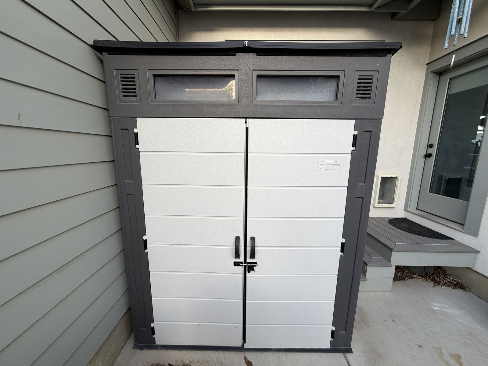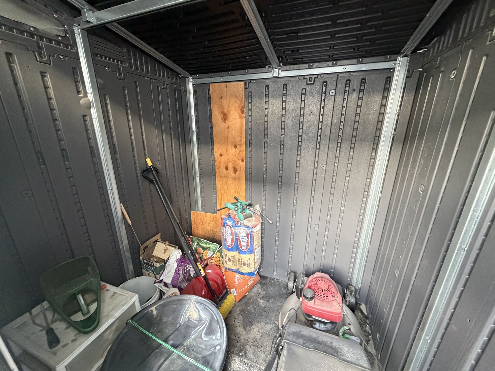 VenmoThis 90inch tall, 72inch wide, and 62inch deep high density polyethylene shed with metal supports and plastic flooring is perfect for yard equipment such as lawn mower, snowblower, bikes, sprinkler parts, and fertilizer. Purchased from Costco a couple years ago these retail for close to $1,000.