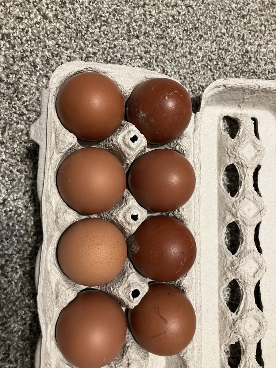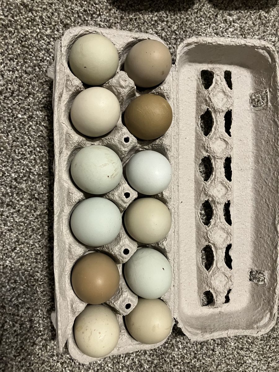 7 Black Copper Marans and 3 Olive Egger chicks available. Other pictures are the eggs they hatched from.