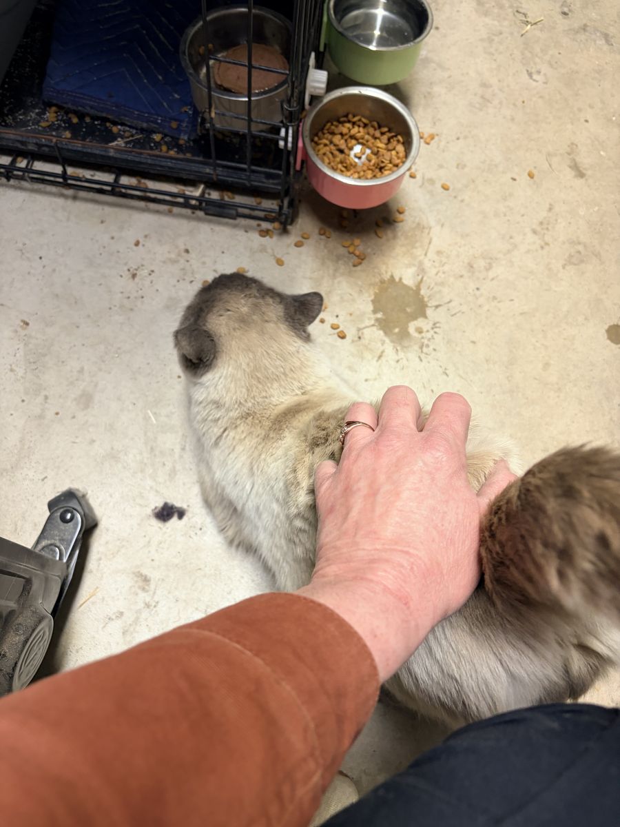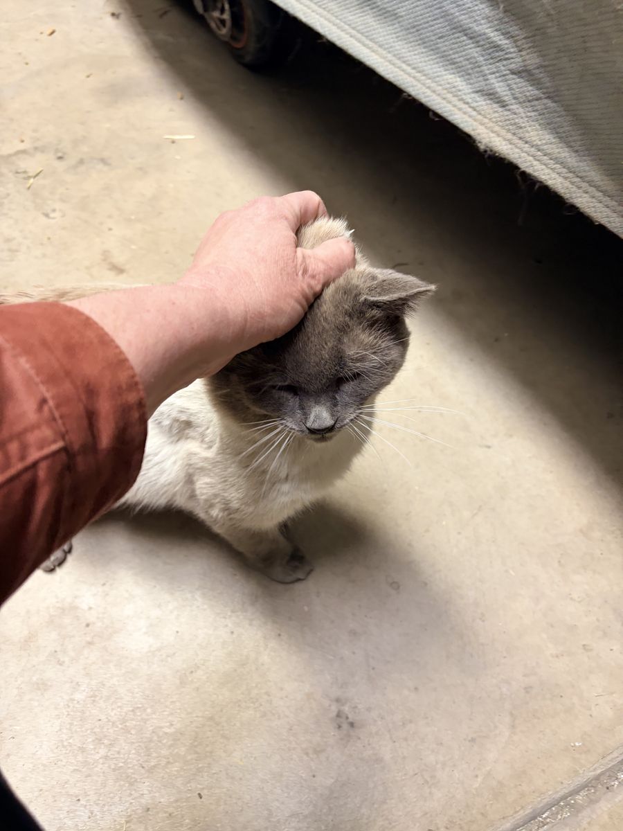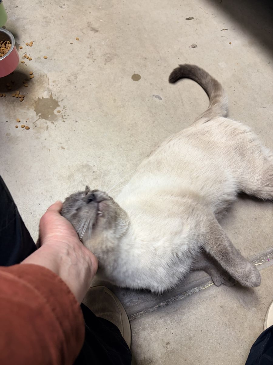 VenmoMax is a 3 year old, intact male cat. He was dropped off a month ago by his previous owners that could no longer keep him. We unfortunately cannot keep him. Our barn cats will run him off. He has been in our garage and is now spraying/marking territory. He is skittish at first, but loves his nightly can of food and head rubs now. He gets fearful when locked in a crate/cage. I believe he truly would be happy outside. I also believe he is scared because he does not want to fight other cats. Our big male barn cat is neutered but is quick to fight over territory and who gets to eat out of his food bowl. And I also have a hunch that this Siamese boy would be genuinely happy neutered as an only cat or with a spayed female that would like a "boyfriend".