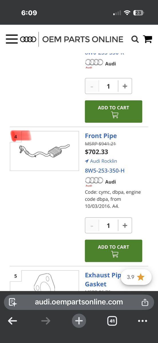 Exhaust system part front pipe and left/right resonators. OEM parts. Donor car clean title, components removed for mod.