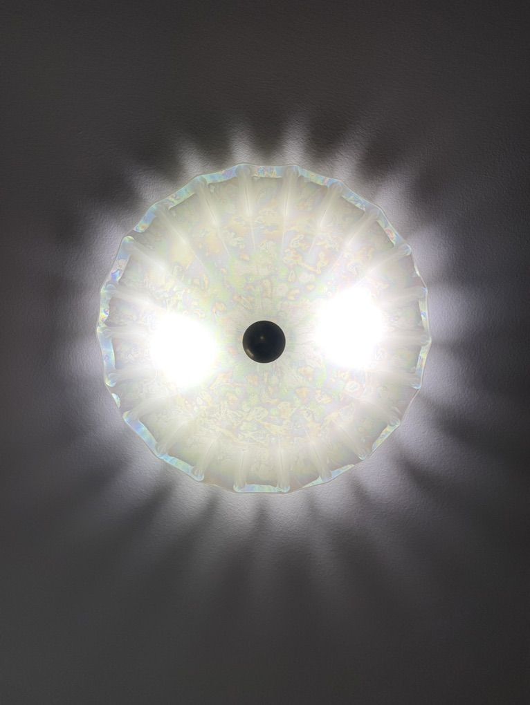 VenmoWorks great. Very good condition. About 15 inches across. Feels nicely sized for an average room. Shorter than a chandelier but still fancier than a basic light.