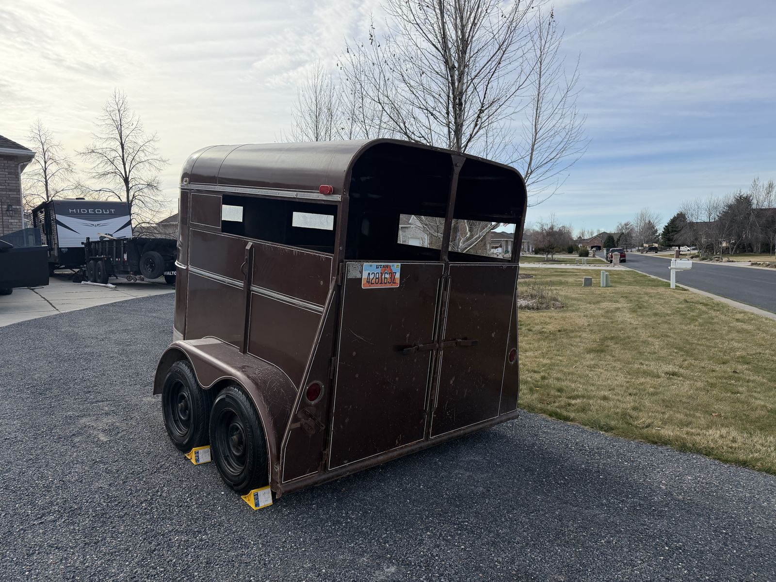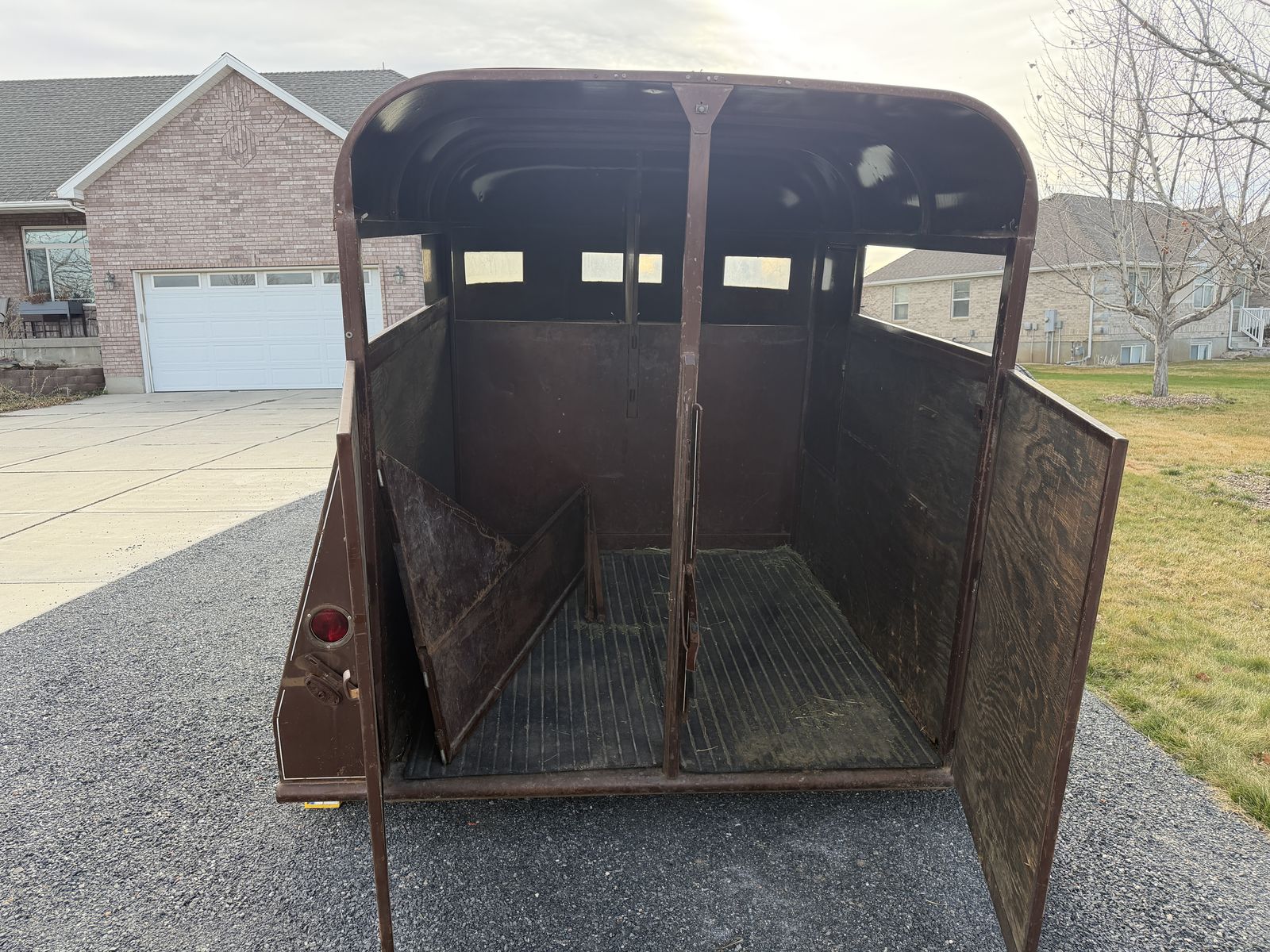 Reliable 2-horse bumper pull trailer available for rent in West Haven. Perfect for hauling horses, cows, calves, goats, sheep, or other livestock.
