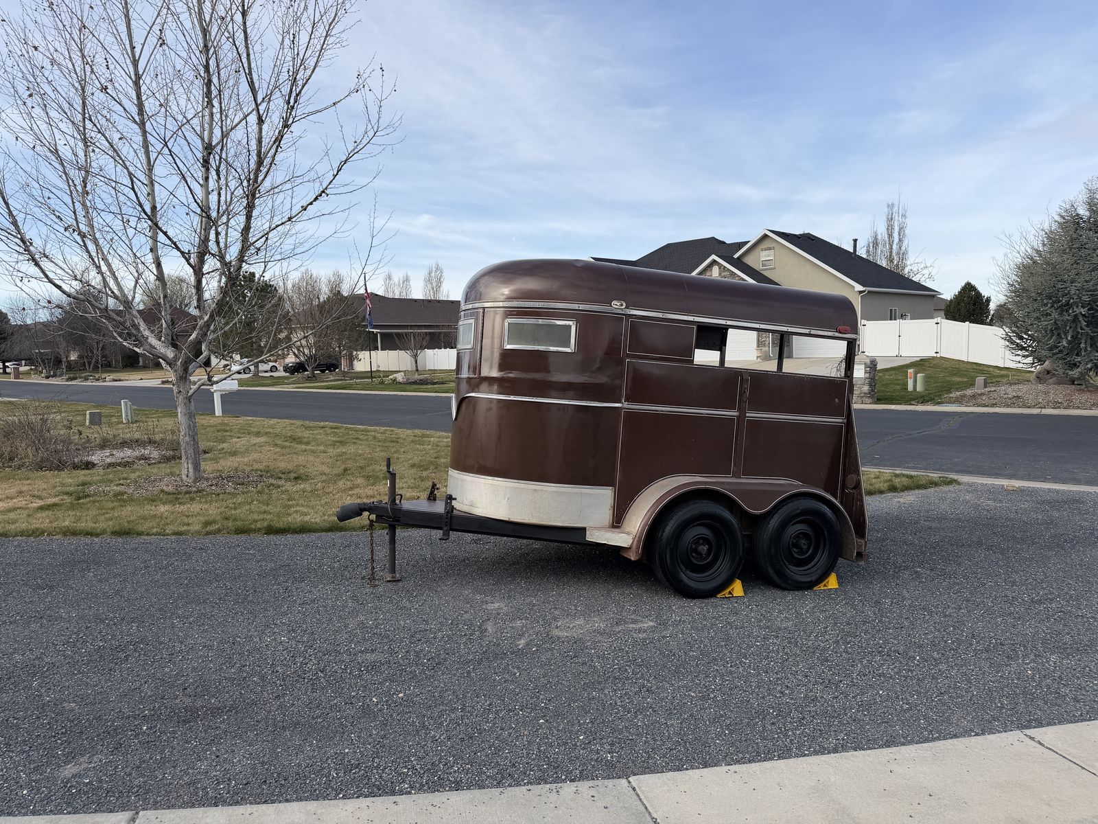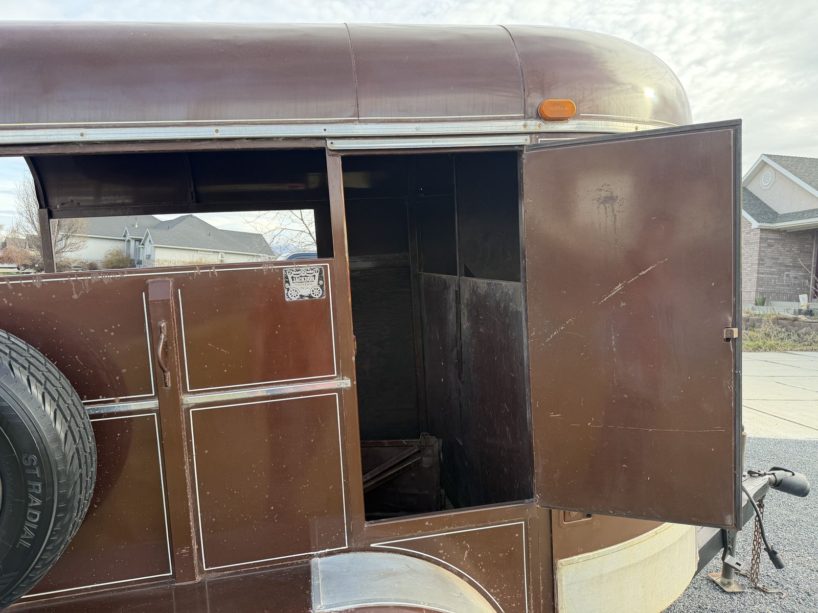 Solid steel Jackson trailer with tandem axles that tows very stable.