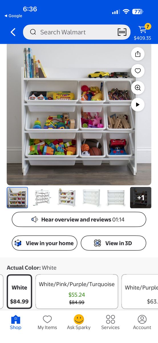 Kids Toy Storage Organizer with Shelf and 9 Plastic Storage Bins, White