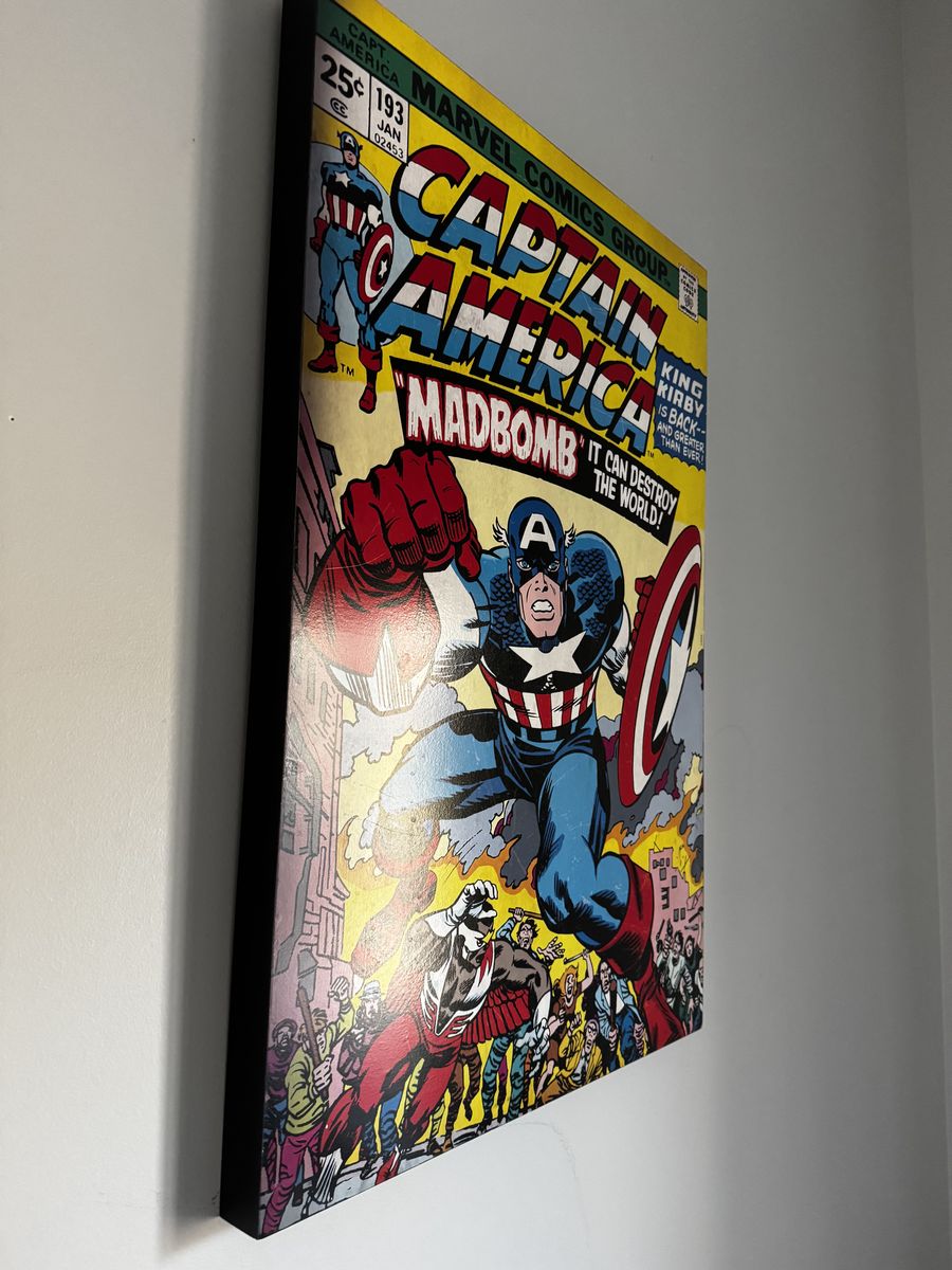 20x30” with 1.5” thickness. Vintage comic book cover on wood. Vibrant colors in great shape.