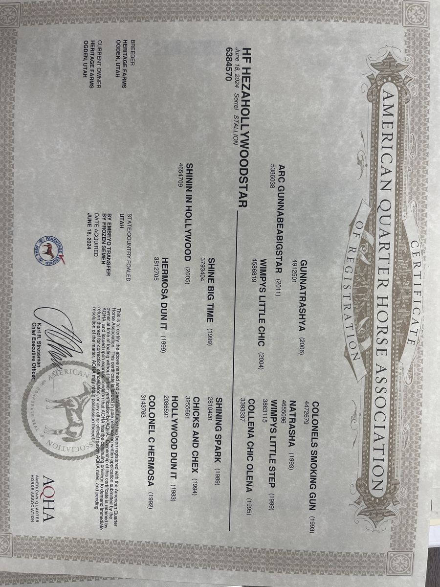 Fancy 2 year old colt by arc gunnabeabigstar and out of shinin in Hollywood who has produced over 200k nrha. This is a stallion and performance prospect. He is great to be around, but had an accident that cut his left eye. Still can see out of his left eye. But there was some vision lost from the accident. Priced for a quick sale