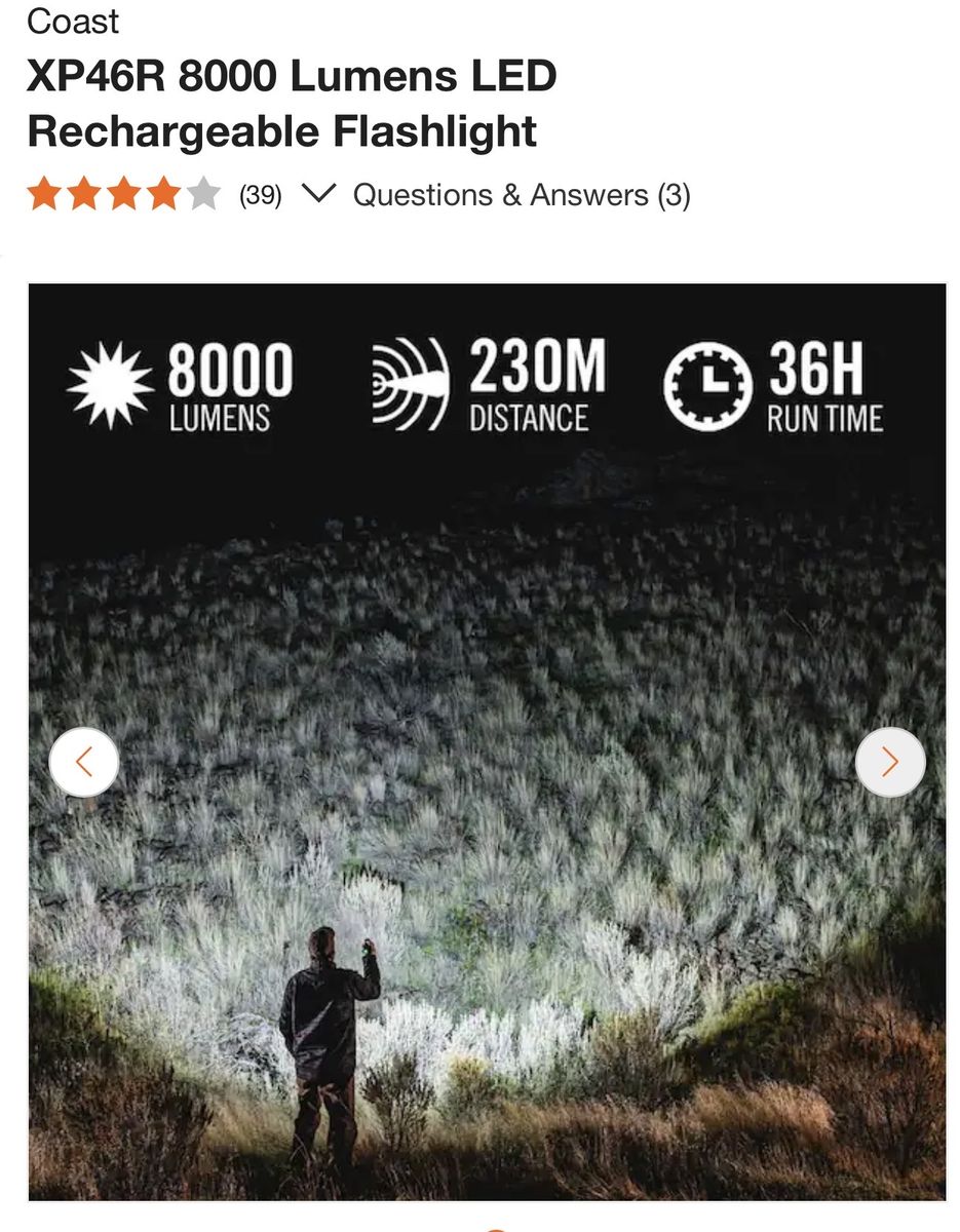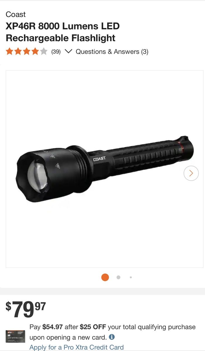 VenmoCoast flashlight Professional series 8000 lumens $79.99 reg price+tax