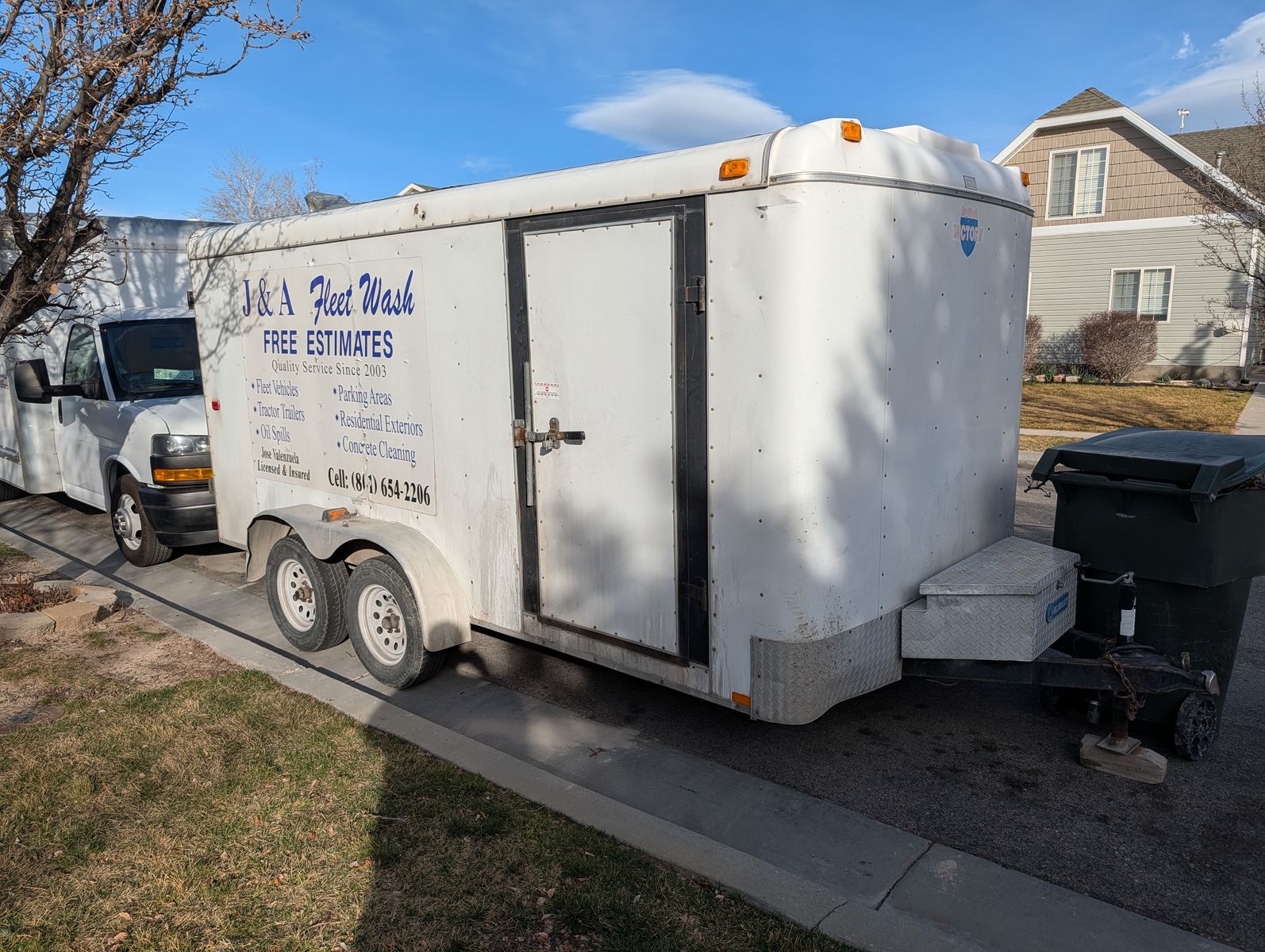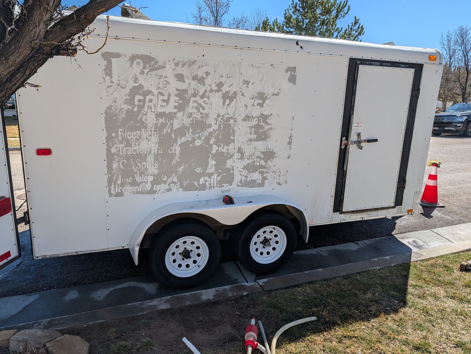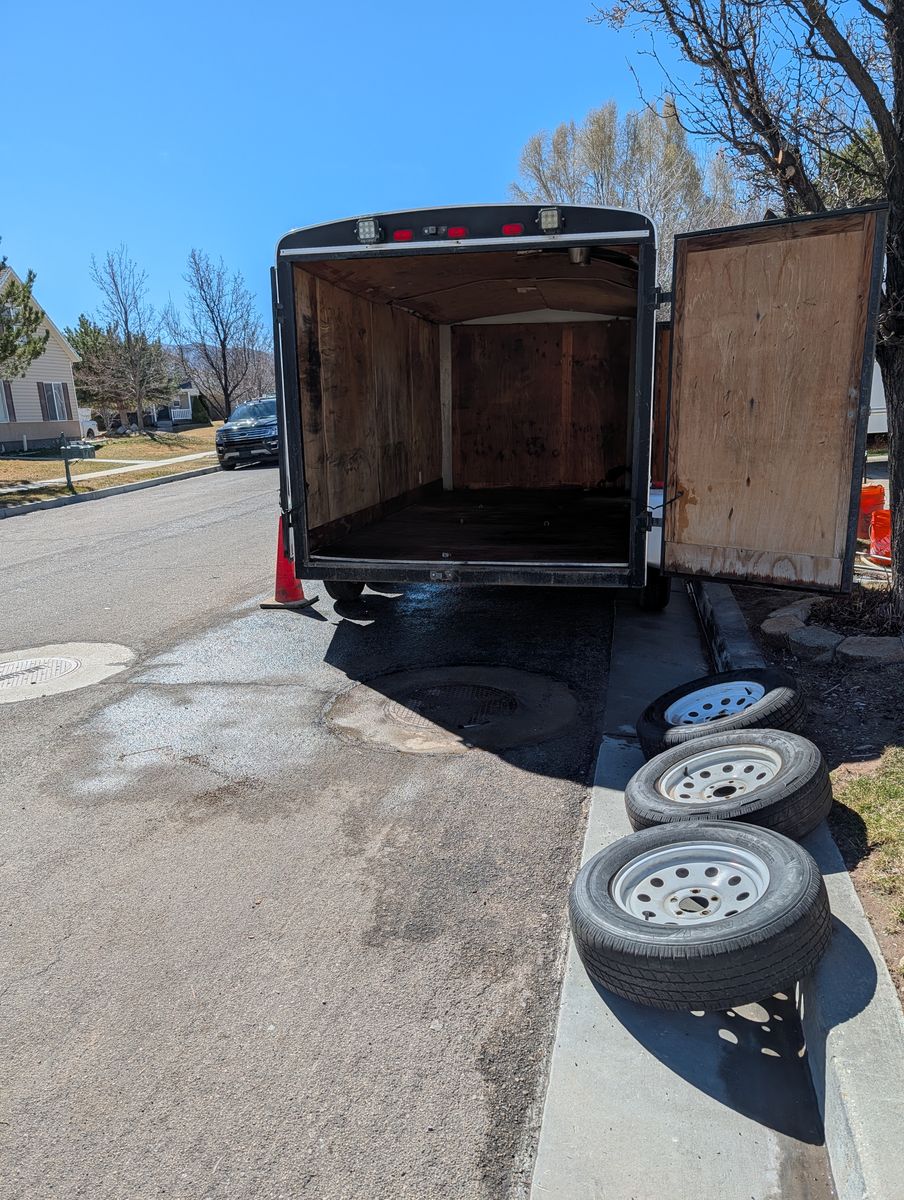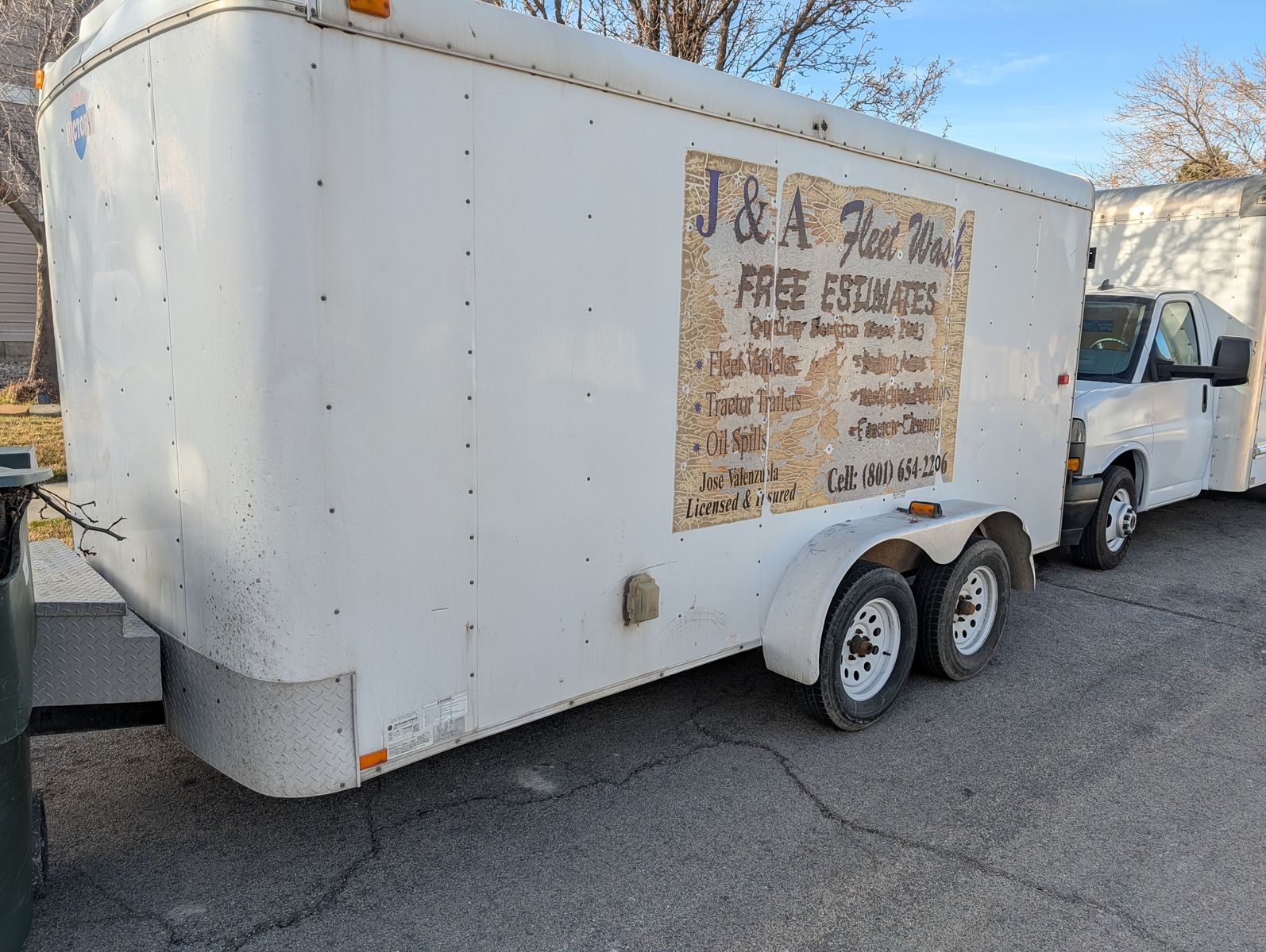 For sale 14' trailer tandem axle 3500 lbs each axle just upgraded and don't need the trailer anymore had a pressure washer system inside I'm the first owner bought it new all lights in working order tires ok and has electric brakes insulated the interior for the cold weather will post more pics as soon as I take everything out tomorrow asking $3000 no trades no scams cash only also has a tool box in front of trailer I will clean it up really good and post pics ASAP thanks for looking at the ad contact Jose @ 801 654 22O6 thanks.