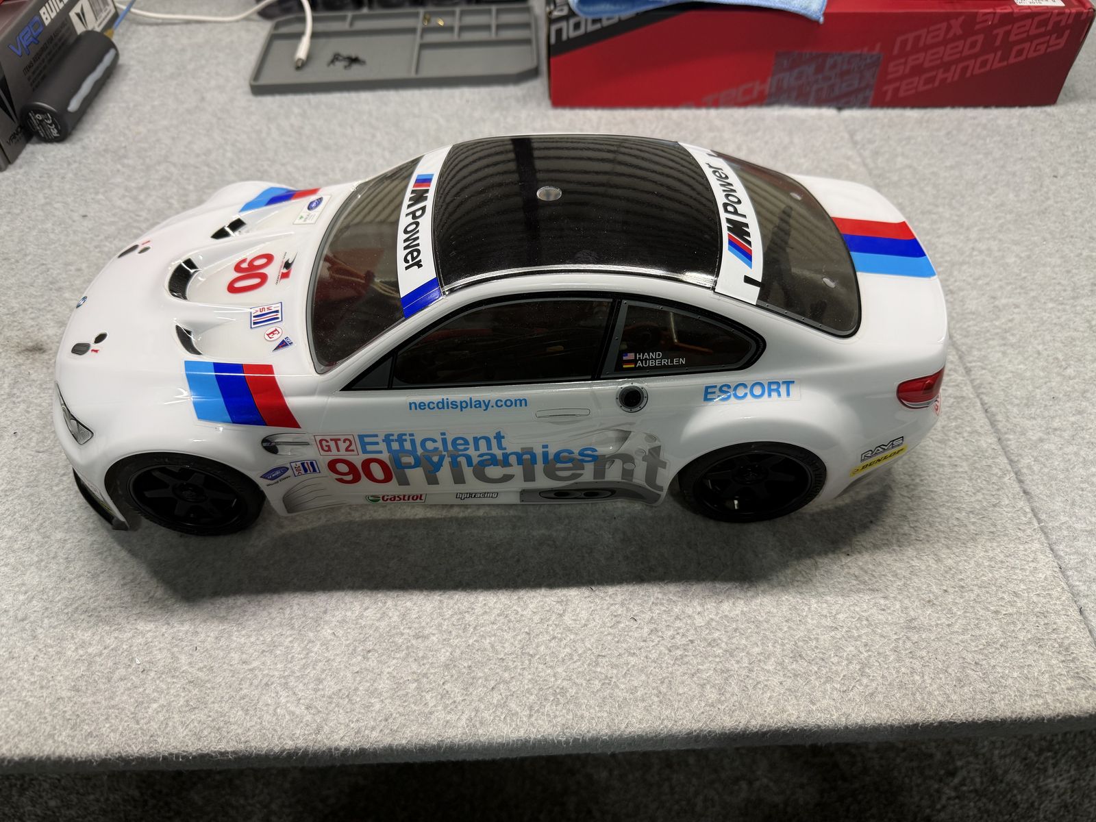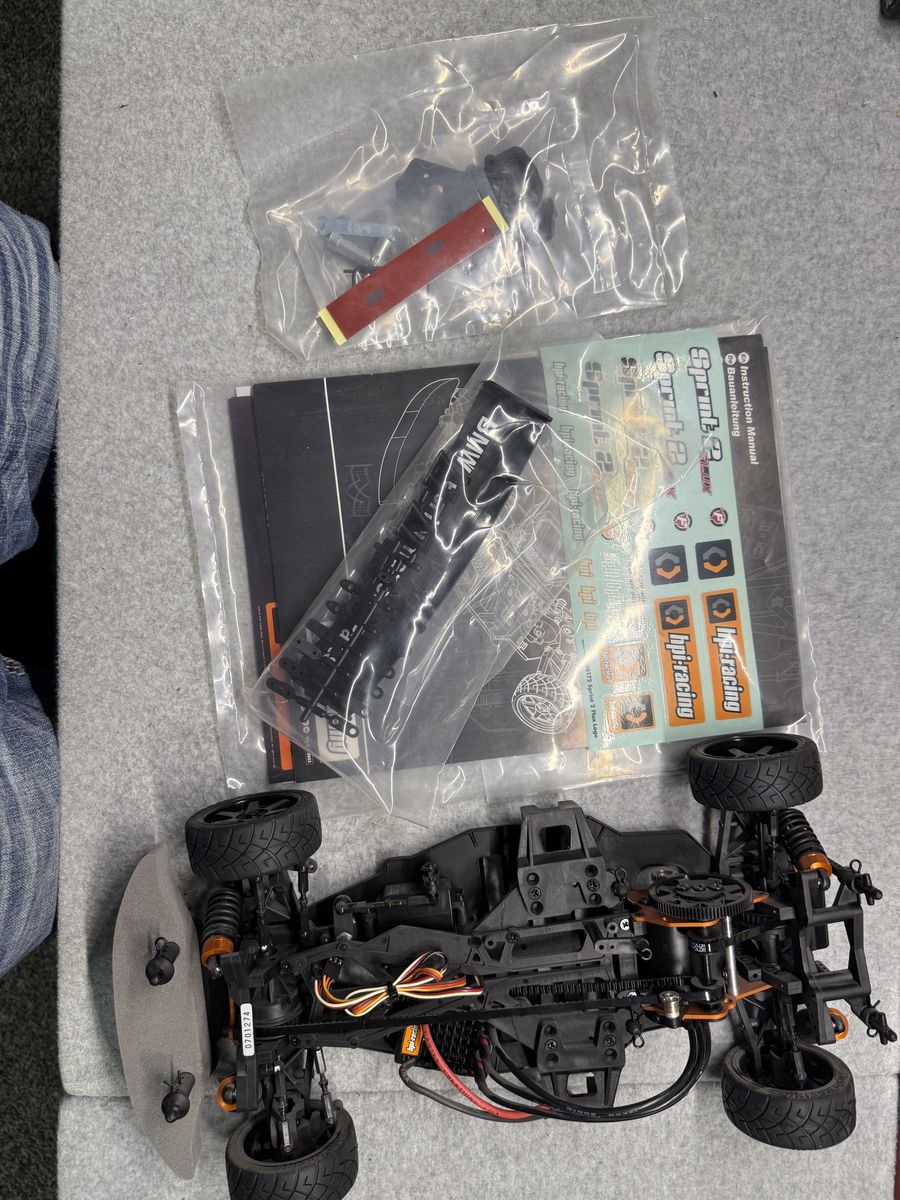 PayPalHPI sprint 2 flux BMW body and FORD gt body has never had a battery in it , Sat on a self since I have owned it , has a brushless motor motor and esc , transmitter and receiver and I'll accessories just needs a battery and charger 250 obo
