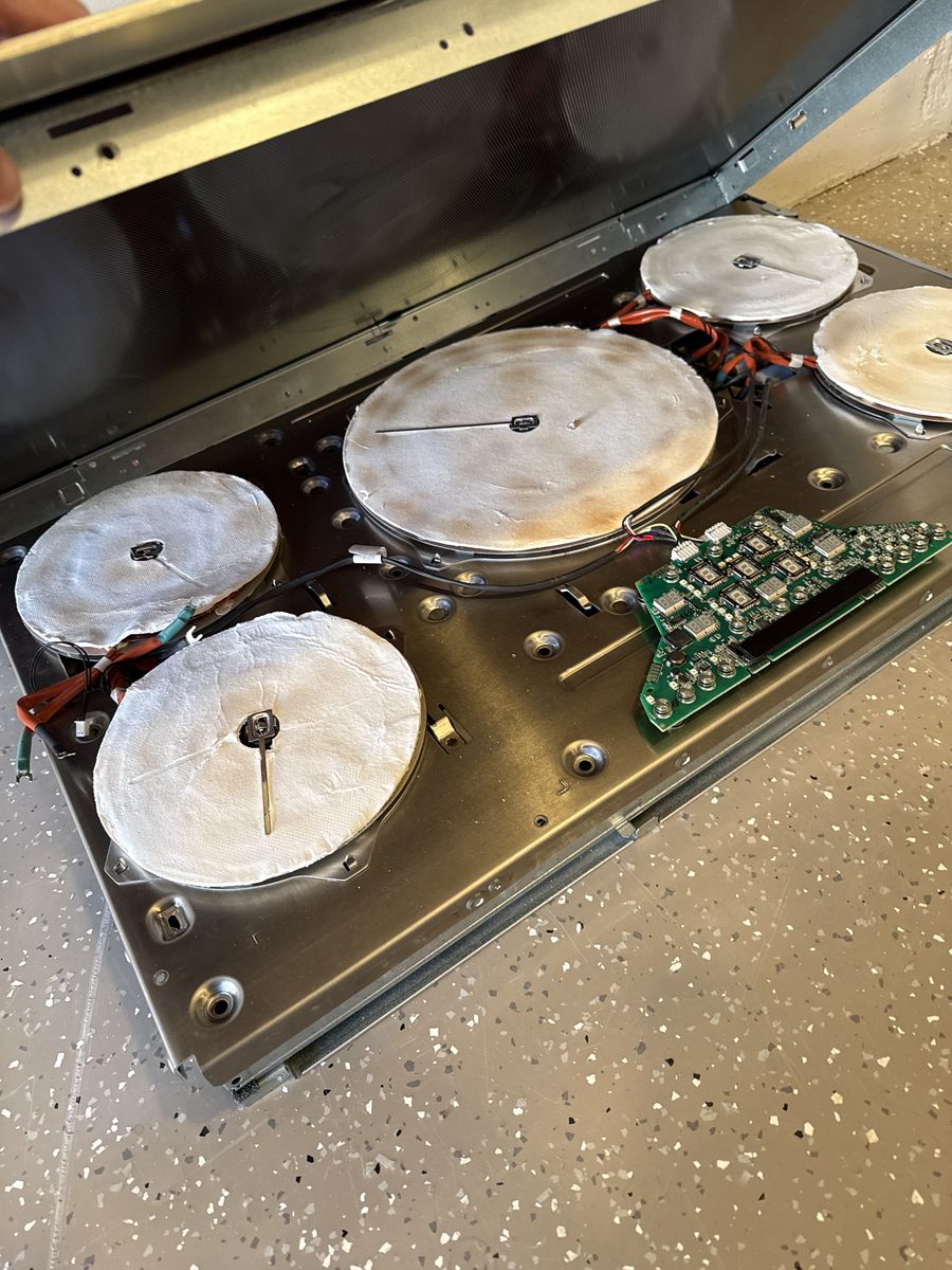 Something burned up internally. The display still works and the coils are intact. The glass has some wear but still looks fine. It was installed five years ago.