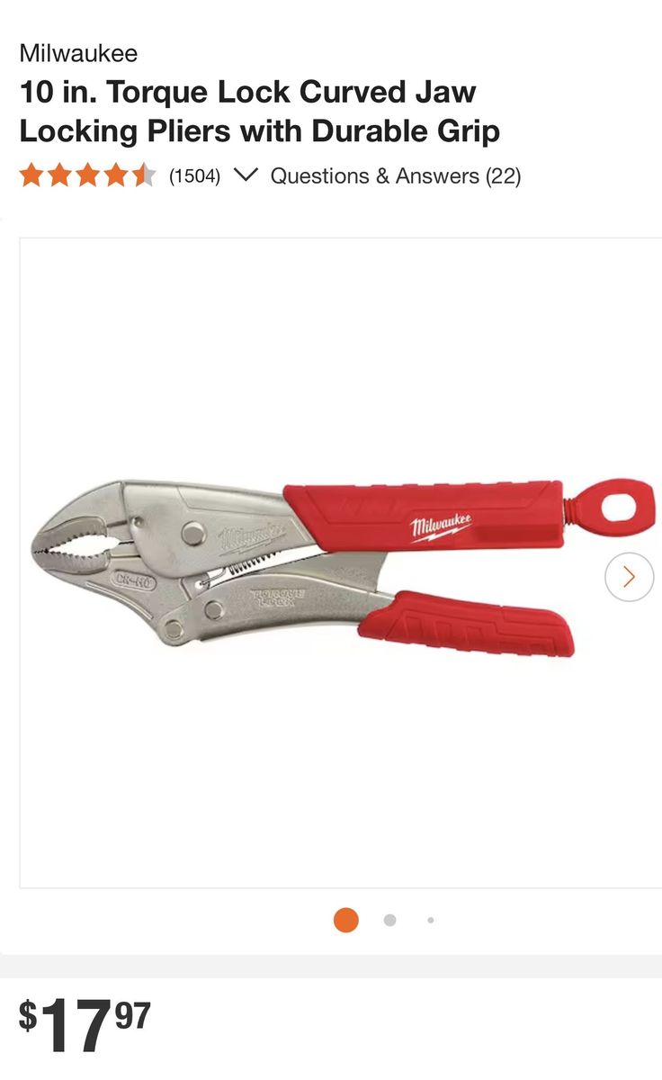 Venmo10 curved jaw locking pliers with grip $17.97 reg price+tax