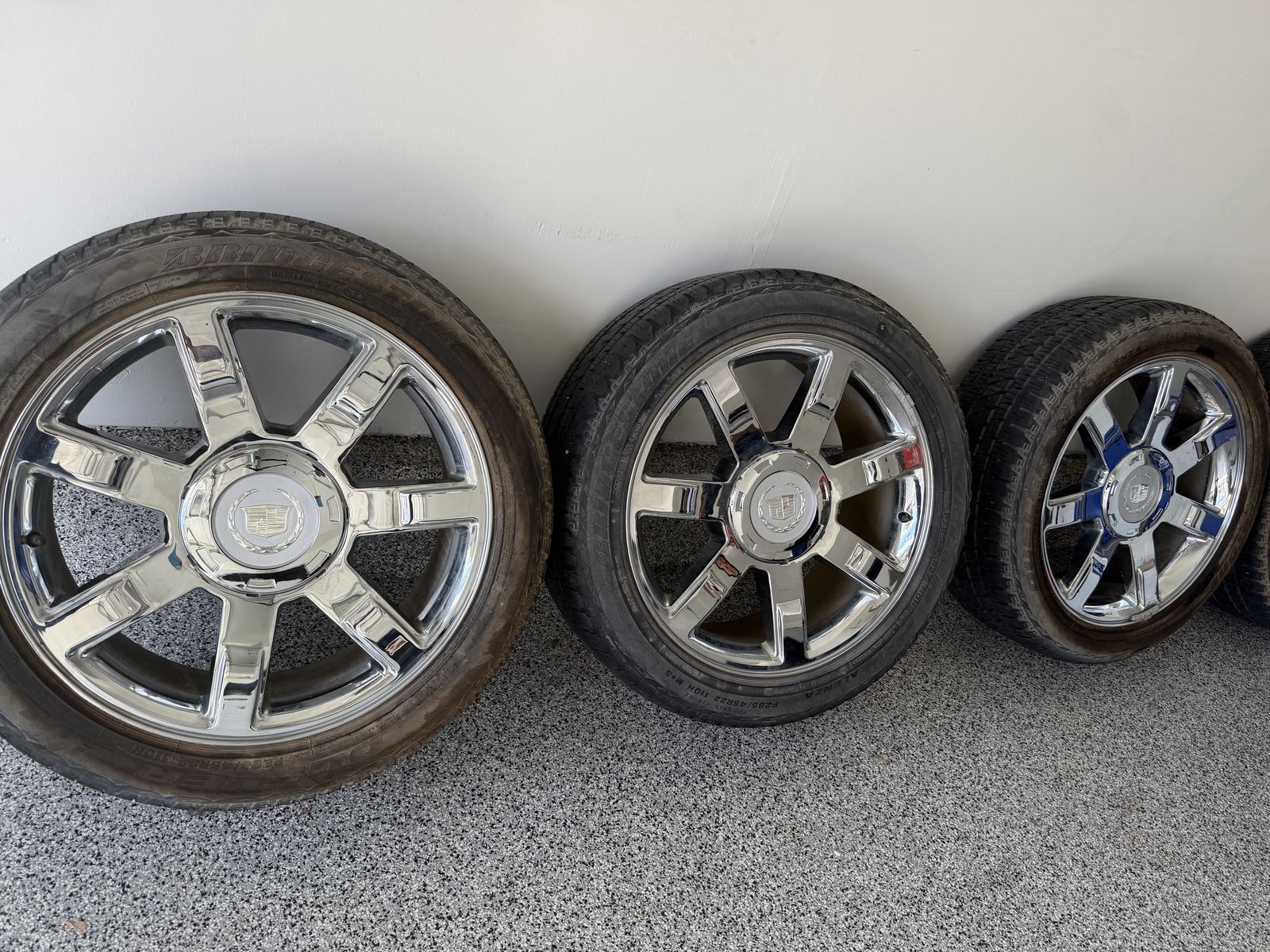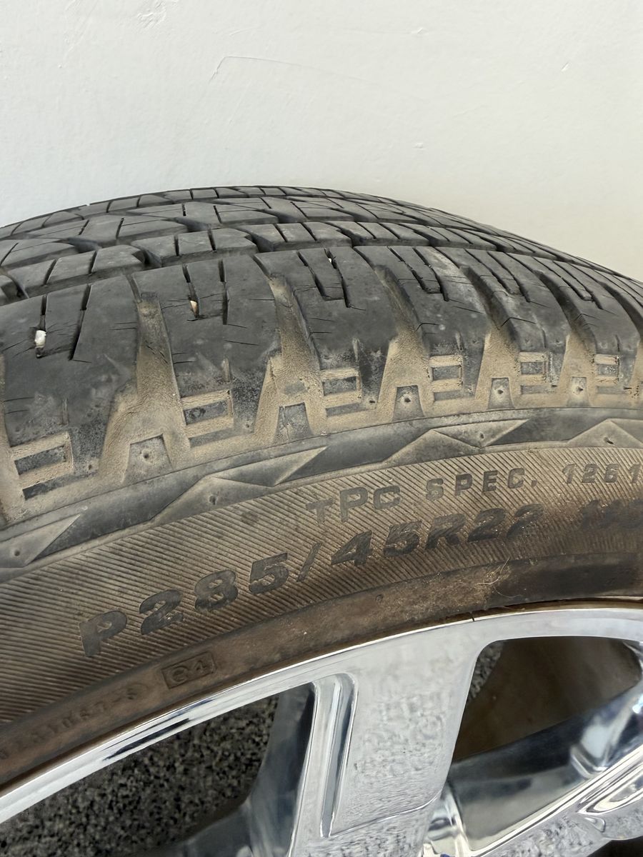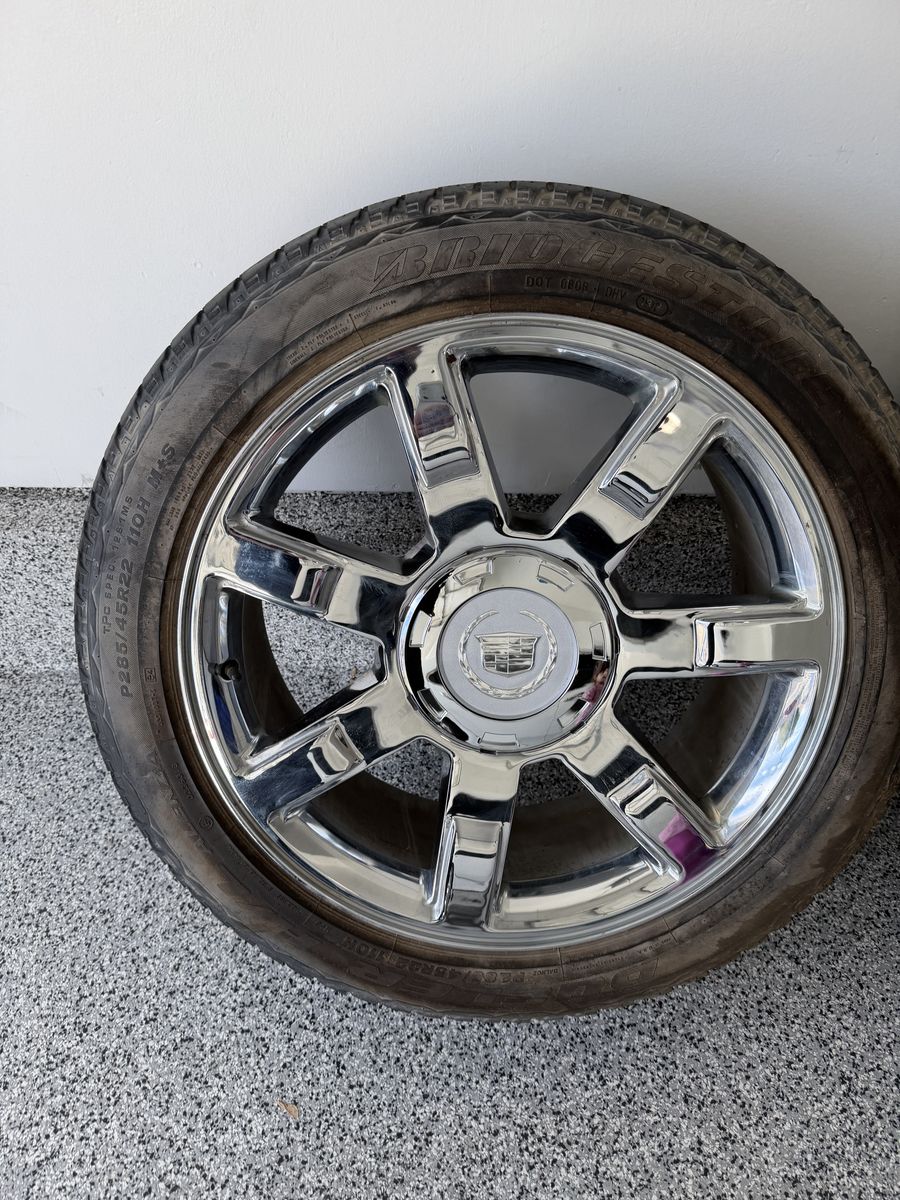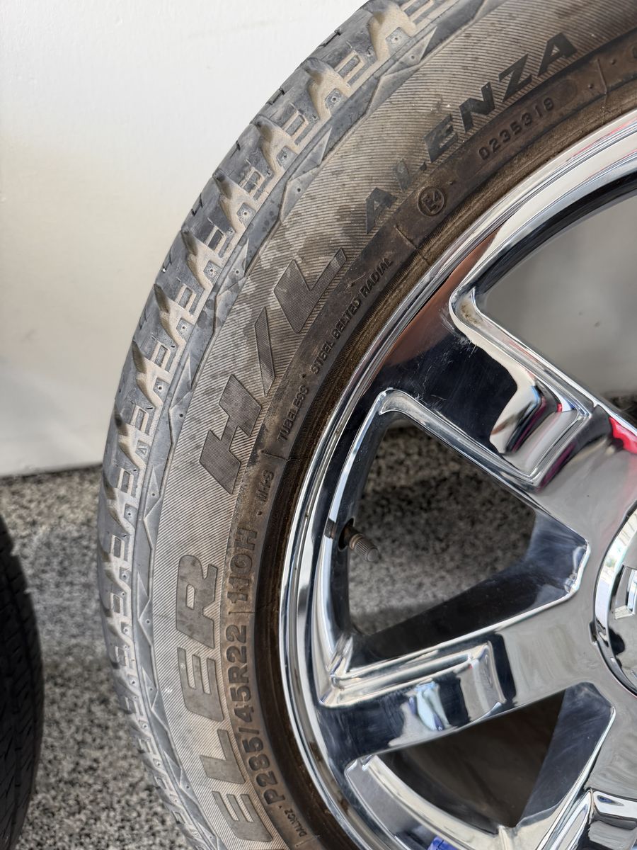 I have a set(4) of 6 lug Cadillac Escalade wheels. They’ll fit most GM 6 lug vehicles(Do your own research). Tires are Bridgestone dueler alenza 285/45/22 with 9/32nds left, Wheels are in really good condition. Must pick in Salt Lake City, NO TRADES, CASH ONLY Firm on price! Tires have some weather cracking.