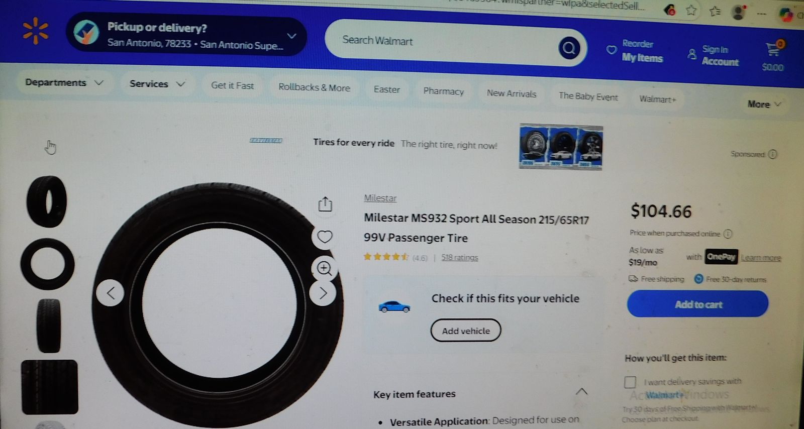 Pair of 215 65R 17 Milestar MS932 good shape like new $80 $40 per tire Walmart $104 per tire must see