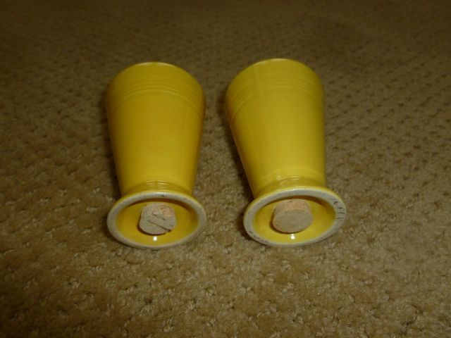 VenmoThese are the original bright lemon yellow ceramic glass shakers. Yellow is quite a happy color! Homer Laughlin China Company started making Harliquin 1936. It was introduced as an affordable dinnerware line. Yellow is one of the four original colors they made. The company stopped making Harliquin in 1964. So everything Harliquin is getting harder and harder to find. These are 3 1/4 inches tall x 2 inches wide at the top. There are nice rings on the outside of the shakers. This matched set is in excellent condition. They have the cork stoppers in the bottom, for easy filling. A must see fun, collectable, vintage item. Price is firm.