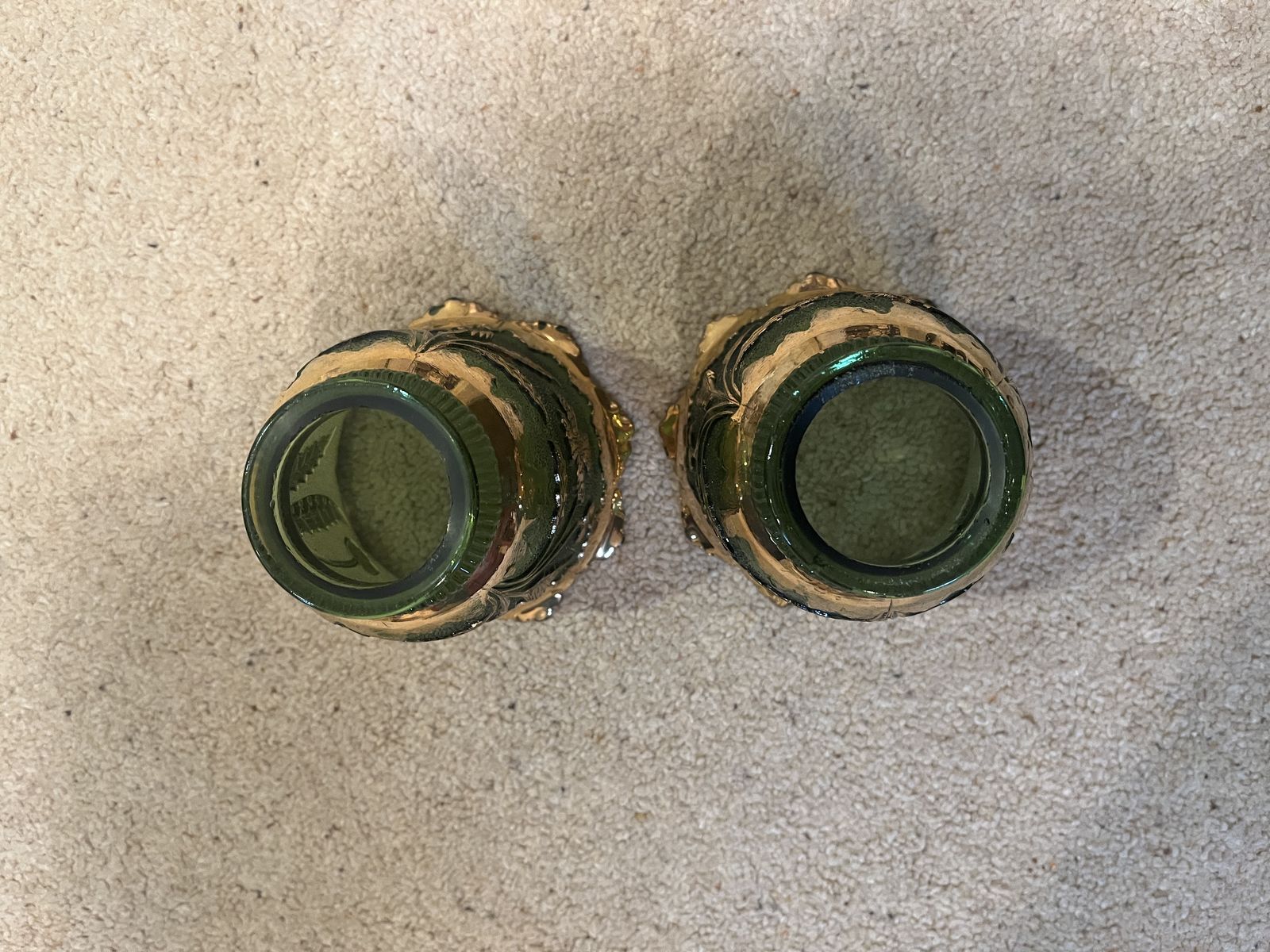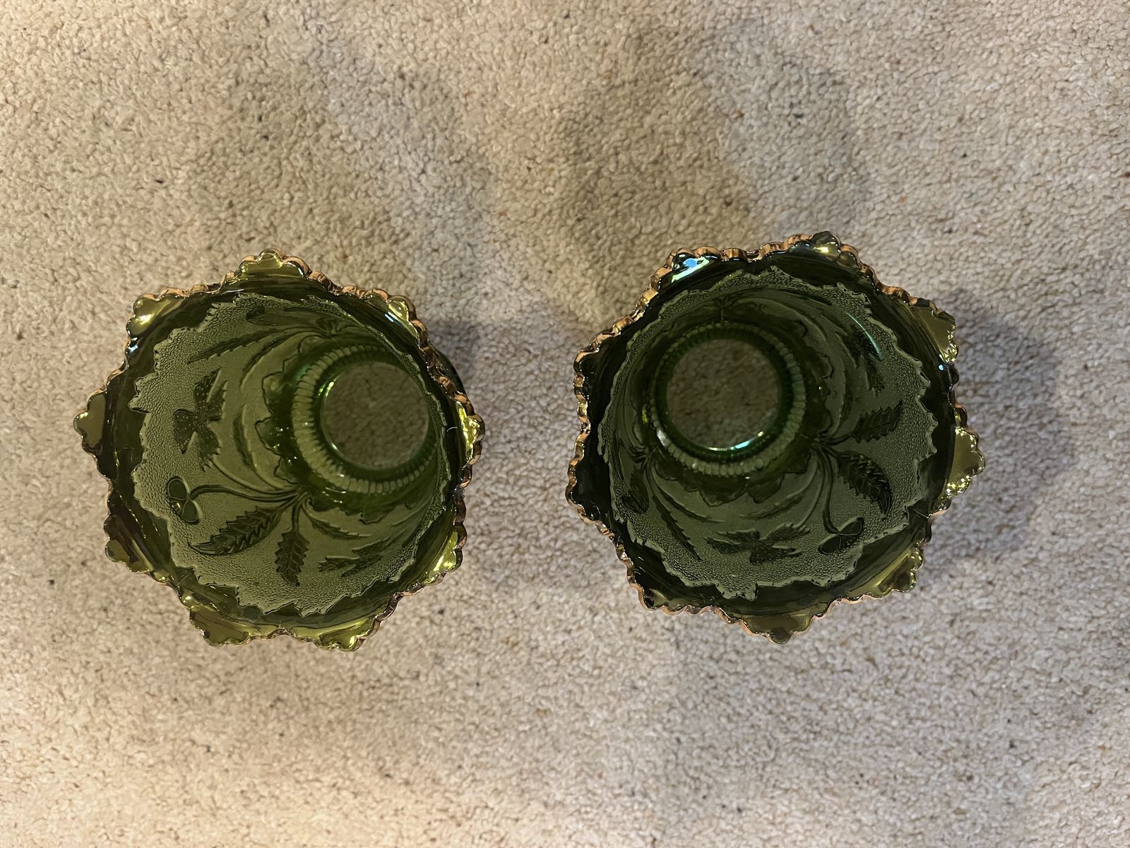 VenmoThis is a Rare set of early American Pattern Glass made by US Glass. They started making glass in 1899. This is a pattern called Delaware, which was part of their State Series. These are in excellent, like new comdition. They measure 4 1/4 inches tall x 4 1/4 inches across. It is 2 inches where is connects to the lamp. Sold only as a set. Selling for a parent. Must see!