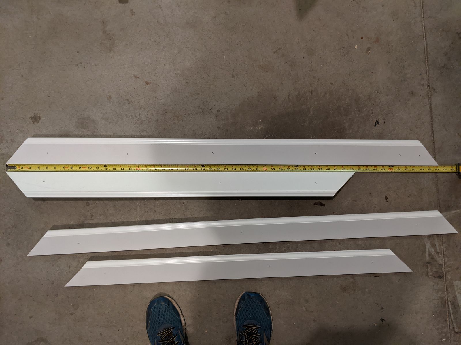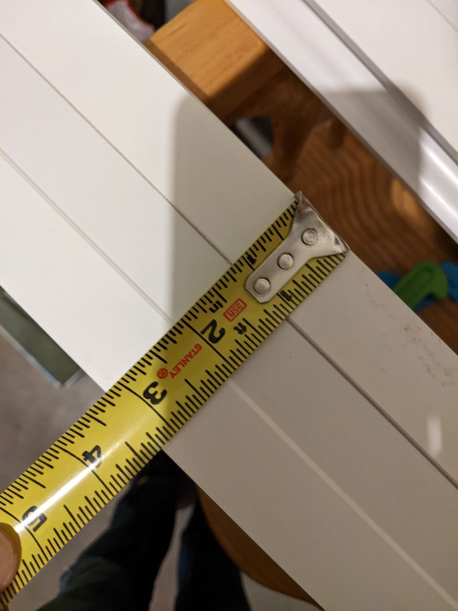 Boards are 3.25 inches wide. Outside dimensions are 54 by 43.5 inches.