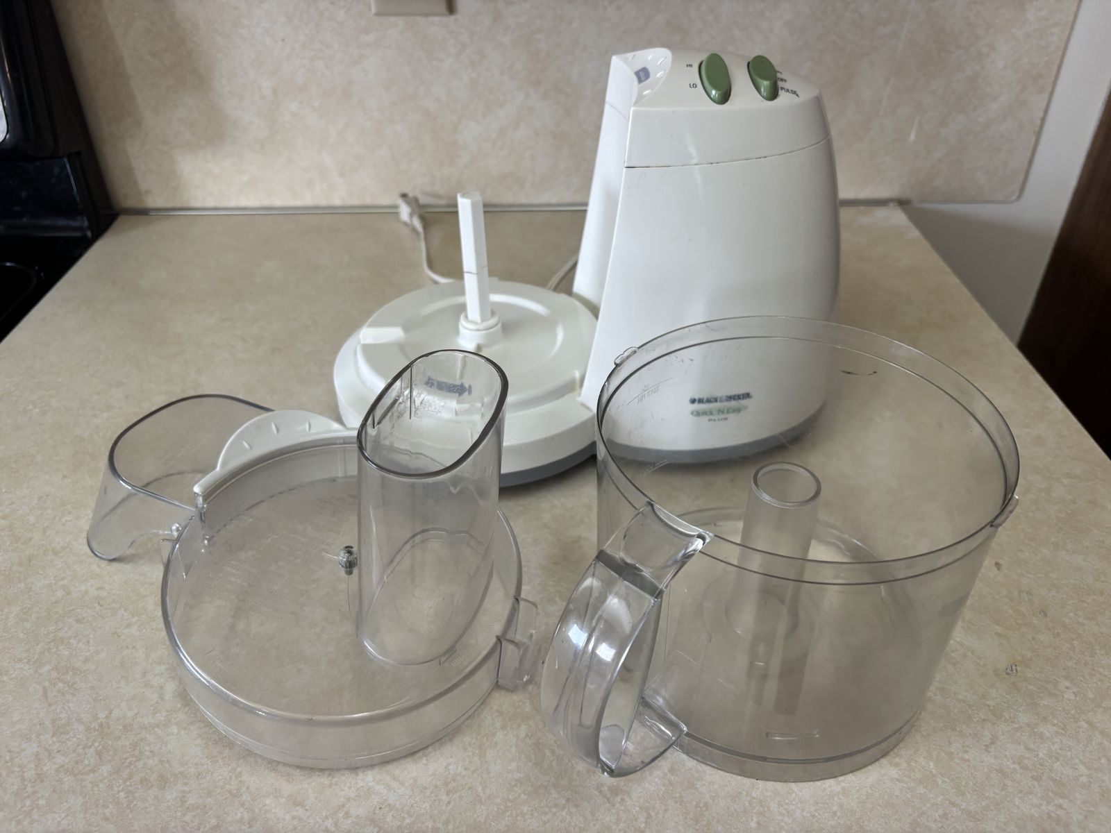 Black & Decker Quick & Easy Food Processor - Missing Blades (Parts Only) For parts or repair: This compact food processor is missing its blades and is being sold as-is. Includes the main unit, bowl, and lid. Perfect for someone handy with tools or looking for a project. Details:\