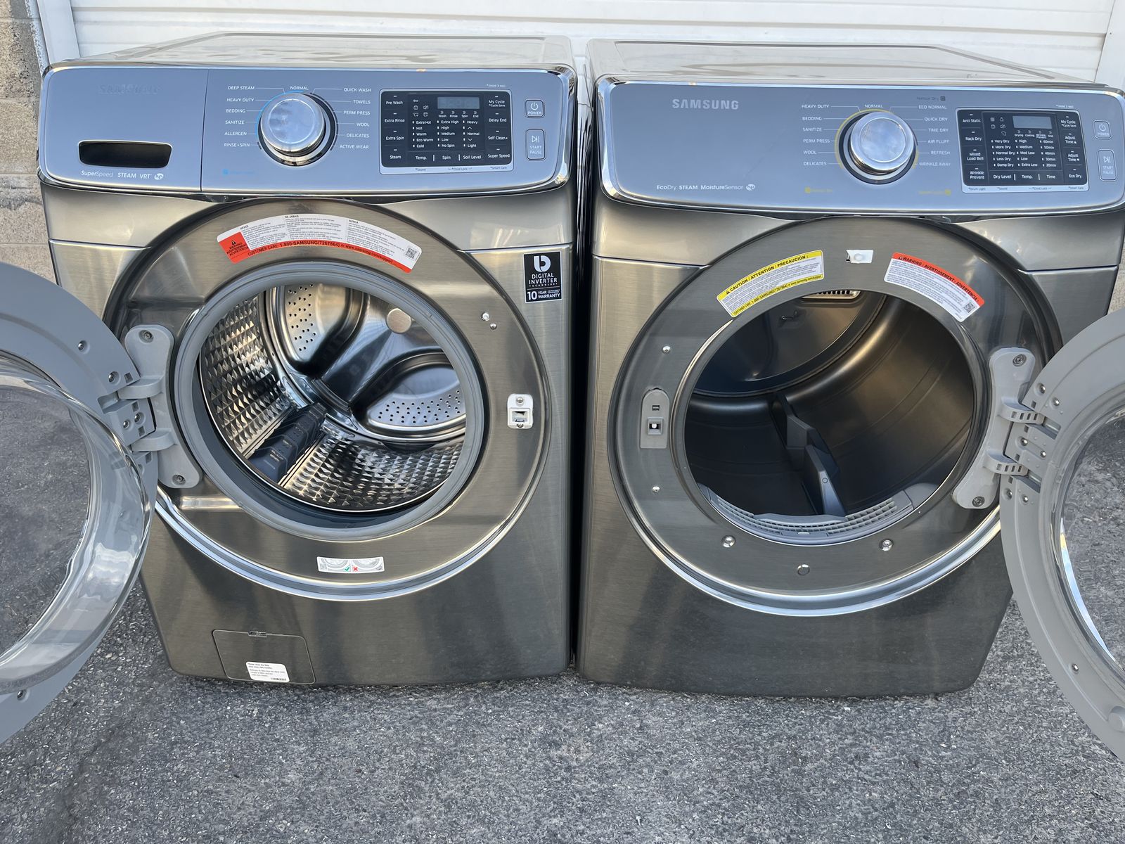 I have for sale a nice and clean Samsung front loader stackable washer and dryer everything on this units works with no problems washer has heavy duty,active wear on the washer and wrinkle away,steam sanitize on the dryer feel free to call or txt with any questions (801)695-0314