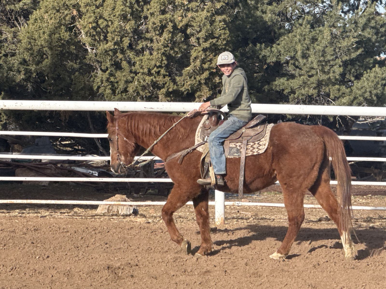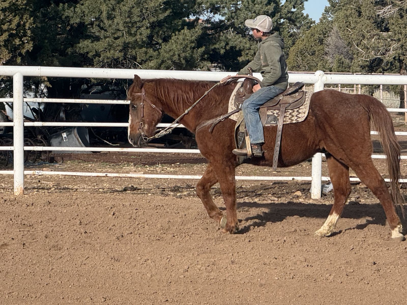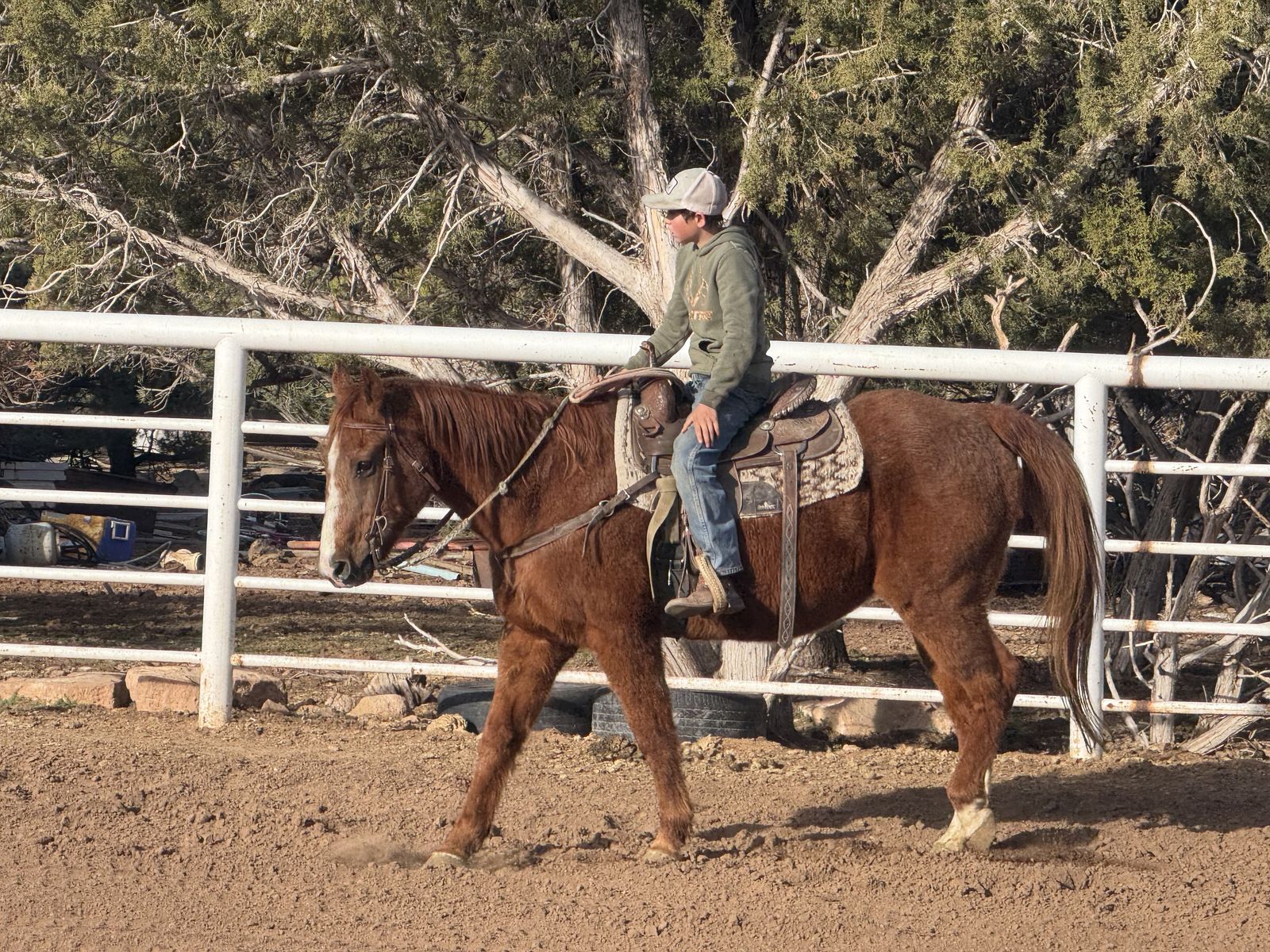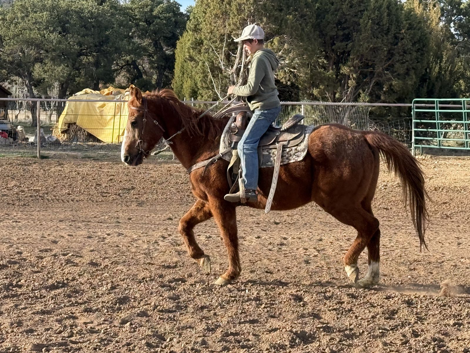 ZelleVery nice beginner or kids horse! He’s as sweet as they come and wouldn’t hurt a flee! He’s so good to be around, great with his feet, great to brush and saddle, great to catch and loves attention! Hes about 14.3 hands tall, stands like a rock to get on and has a nice walk, trot and smooth lope! Great on the trails and goes around nice in the arena too! Loads and unloads in the trailer like a dream and no bad habits! 14 years old, 4500$ obo, call or text Jake for videos!