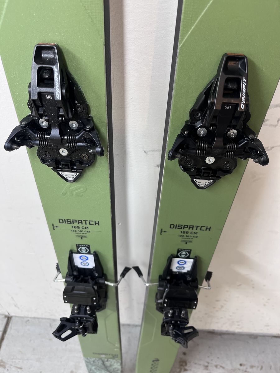 ZelleFairly new K2 Dispatch 101 skis in a 192cm length with Dynafit Rotation 12 bindings and Pomoca Mohair skins. Mounted to a 28.5 boots (325 BSL) Skis are in great shape with some top sheet damage which was repaired. Skins were used but also in great shape. Great setup for someone looking to start skiing in the backcountry or uphill skiing at the resort.